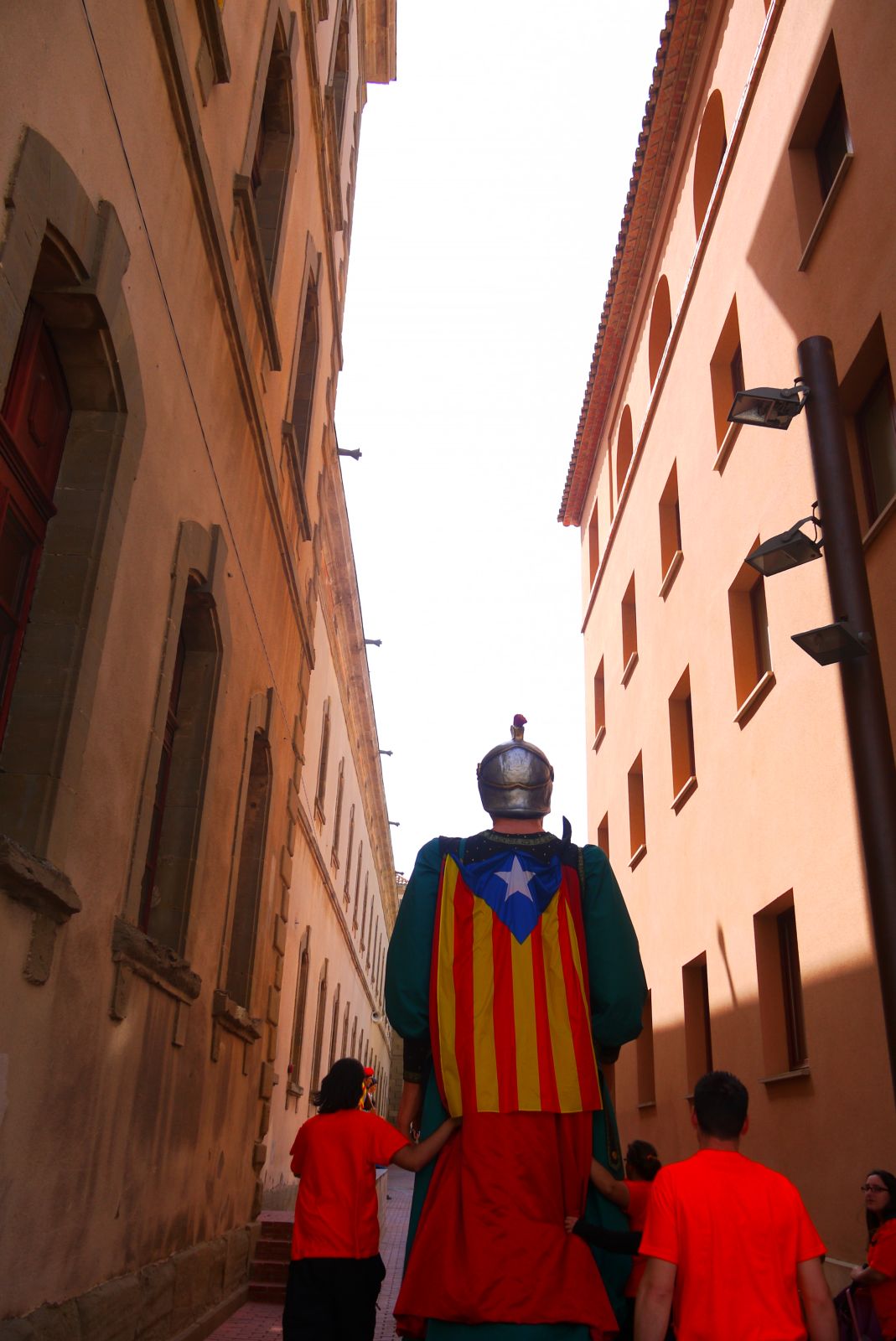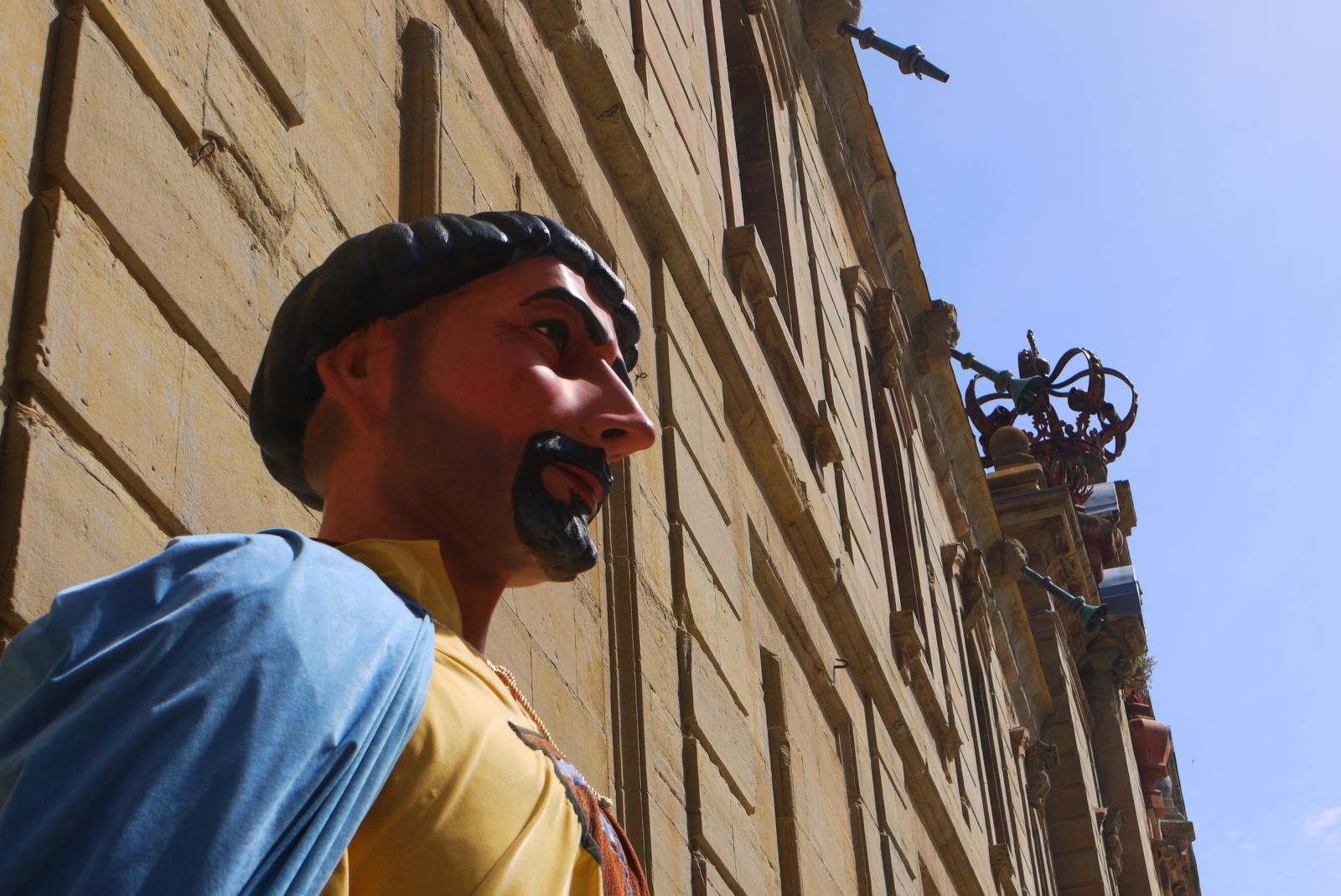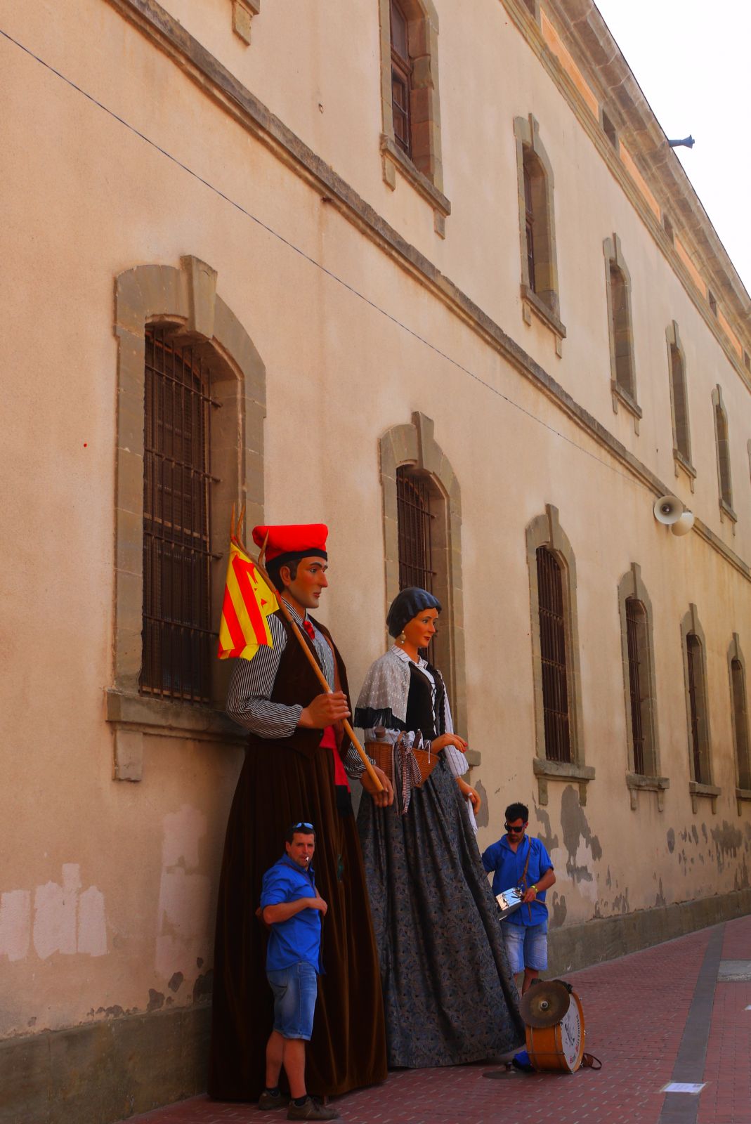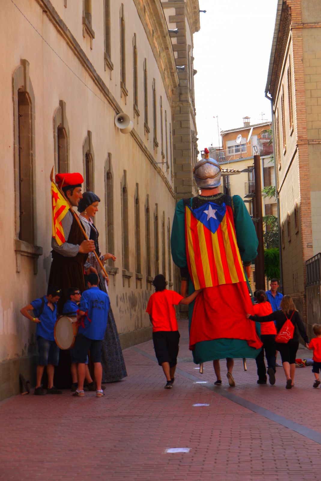 Posats demperus, però ben agafats per les seves colles, els gegants anaven fent acte de presència. Com podeu veure, barbes i cabelleres anaven al seu aire, seguint l’impuls del vent.