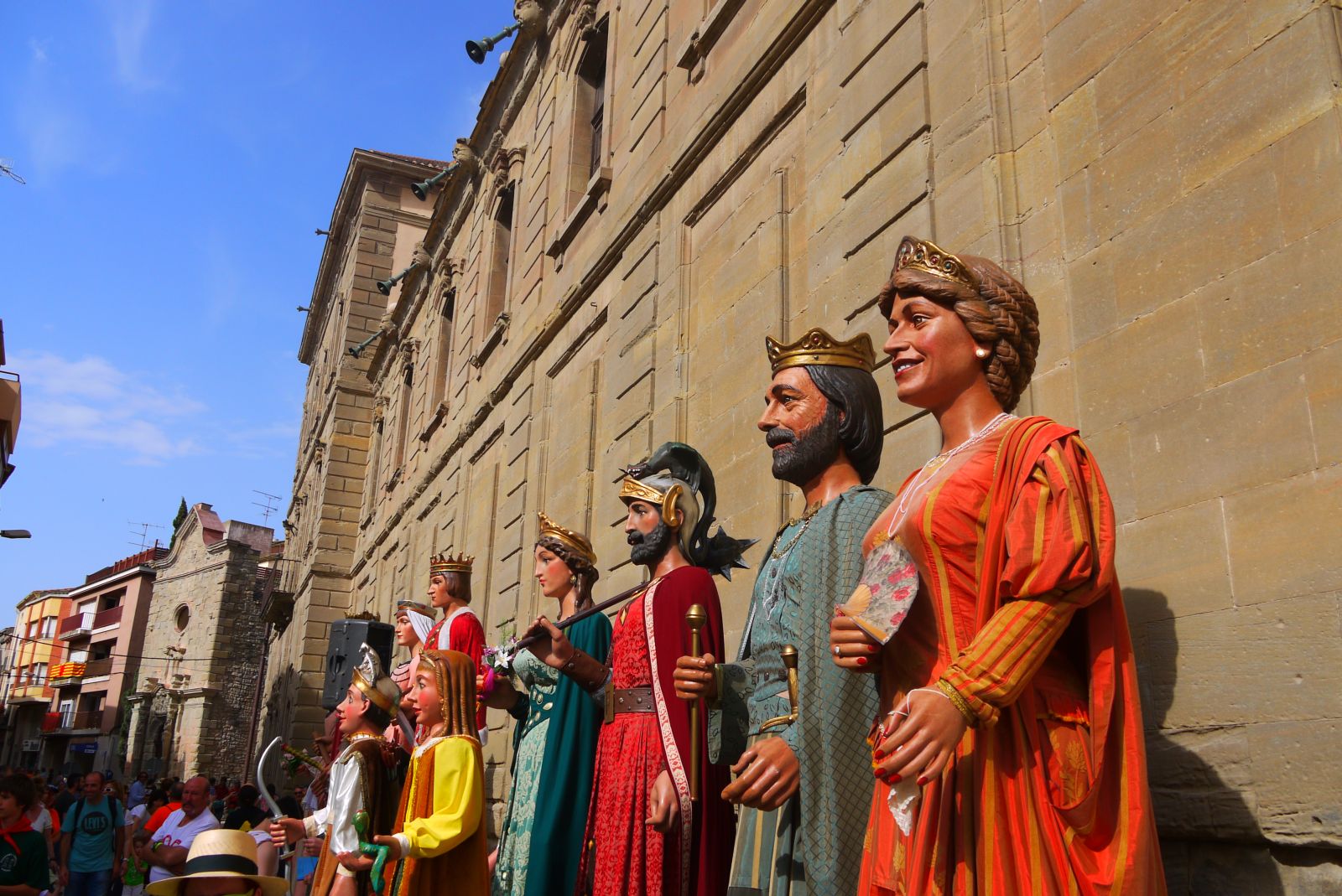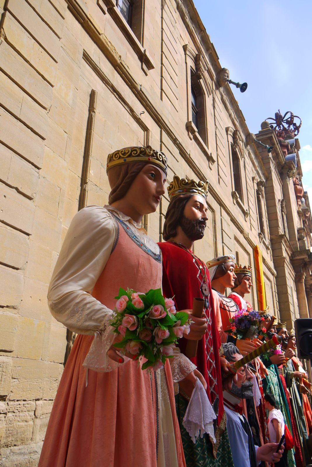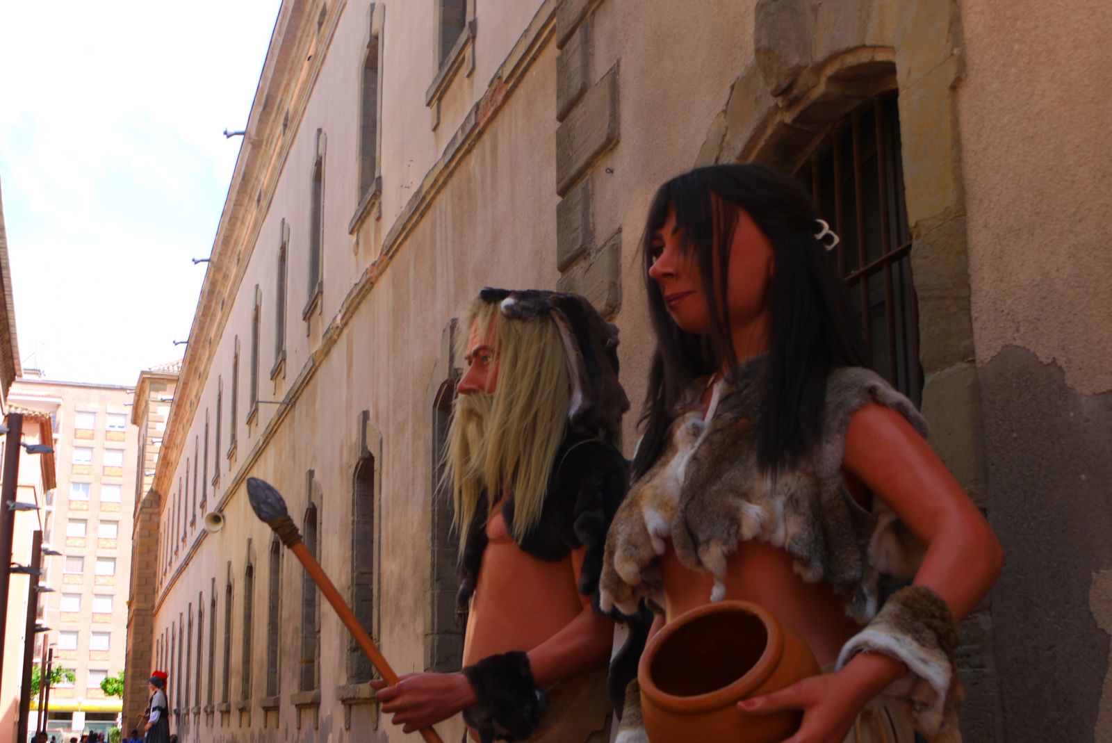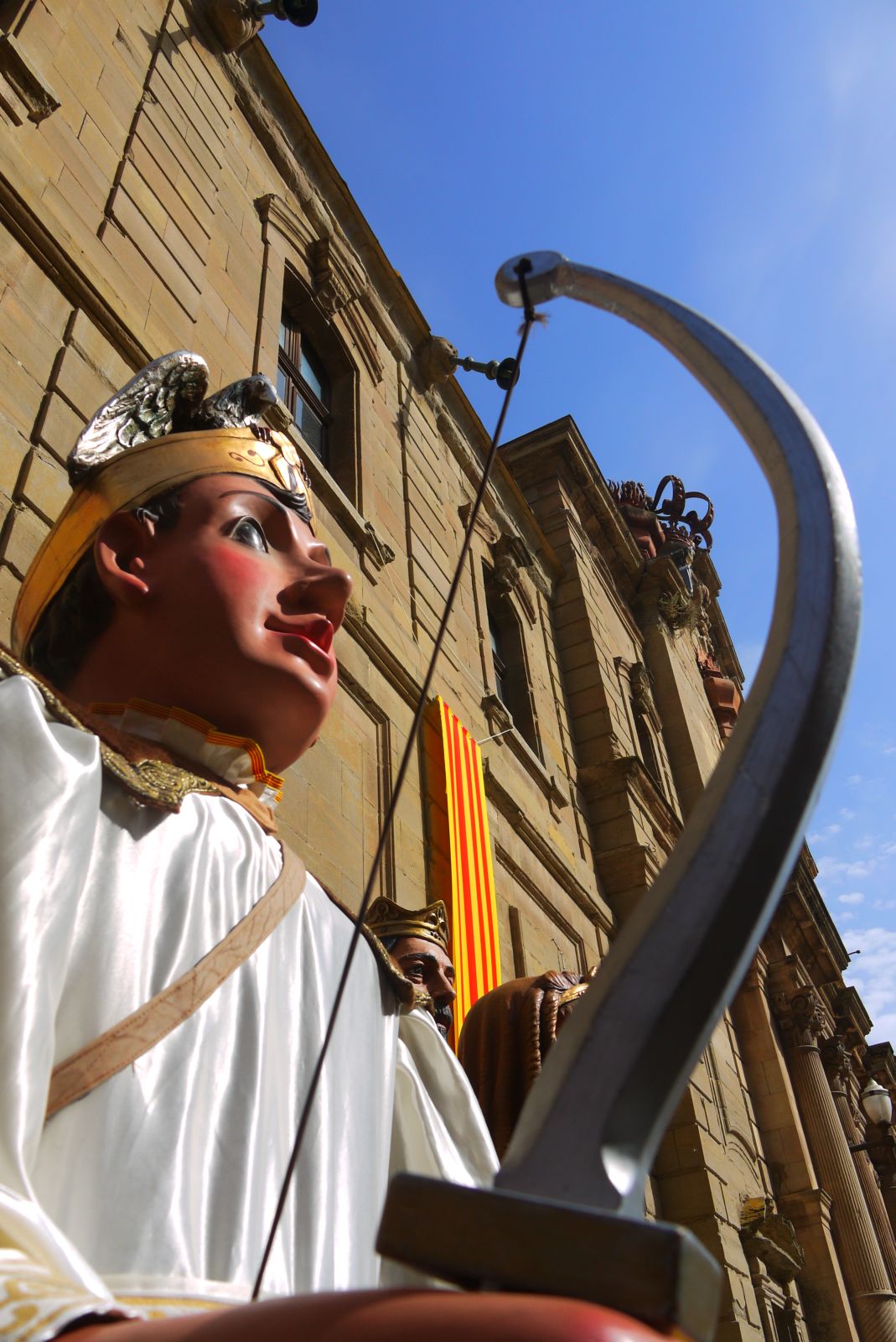 Posats demperus, però ben agafats per les seves colles, els gegants anaven fent acte de presència. Com podeu veure, barbes i cabelleres anaven al seu aire, seguint l’impuls del vent.