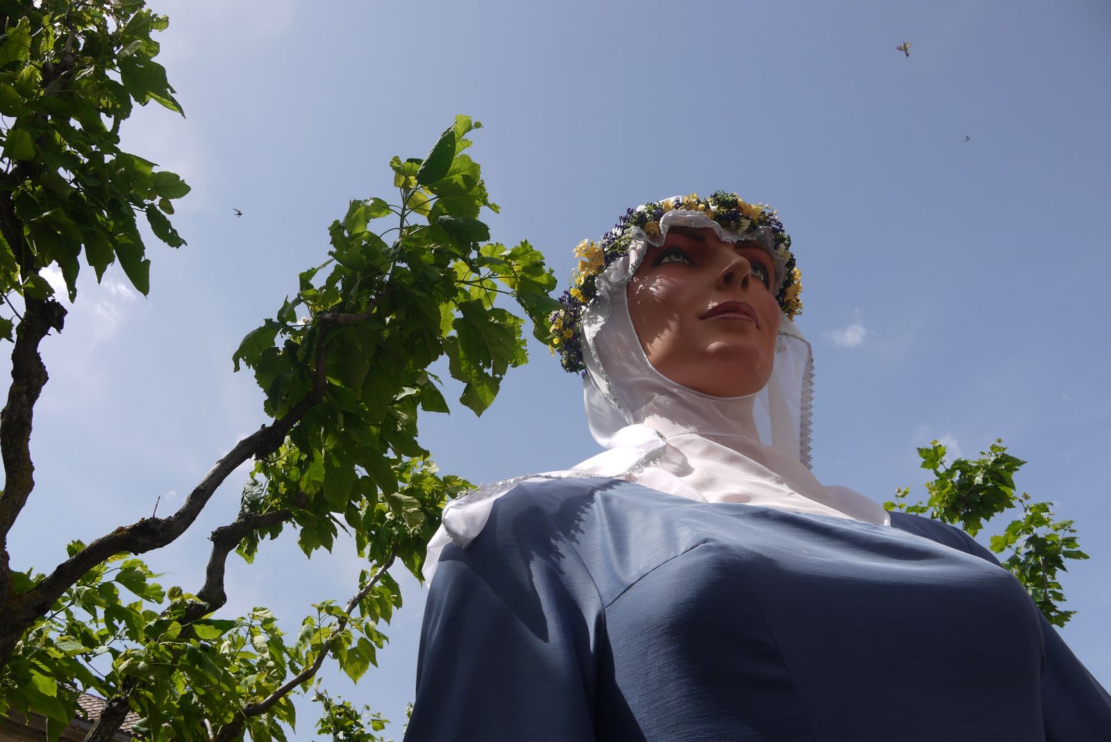 El pom de flors, per la geganta, i el ceptre, pel gegant. Em recorda algú de casa!
