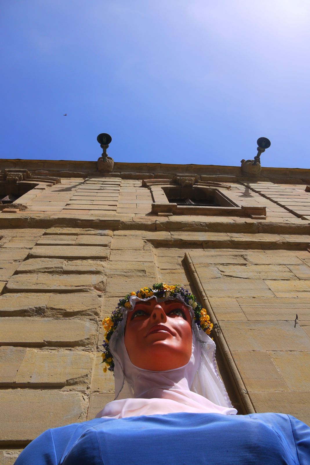 La perruquera, enfilada a una escala, donava els darrers retocs a aquesta jove gegantona tan simpàtica. Això és servei a mida!