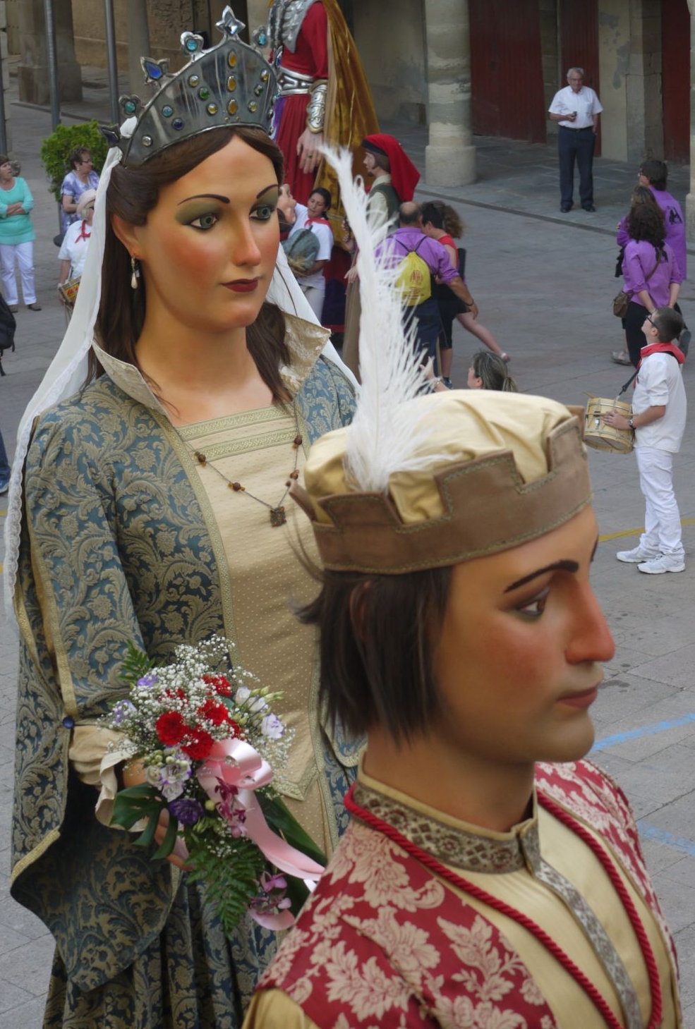 Primer pla dels nostres gegants. En motiu de la festa els hi han arreglat els cabells i a l’Almodis l’han maquillat professionals. En aquest primer pla podeu veure el bé que es conserven tot i que ja tenen seixanta-sis anys. Són nascuts al 1948.