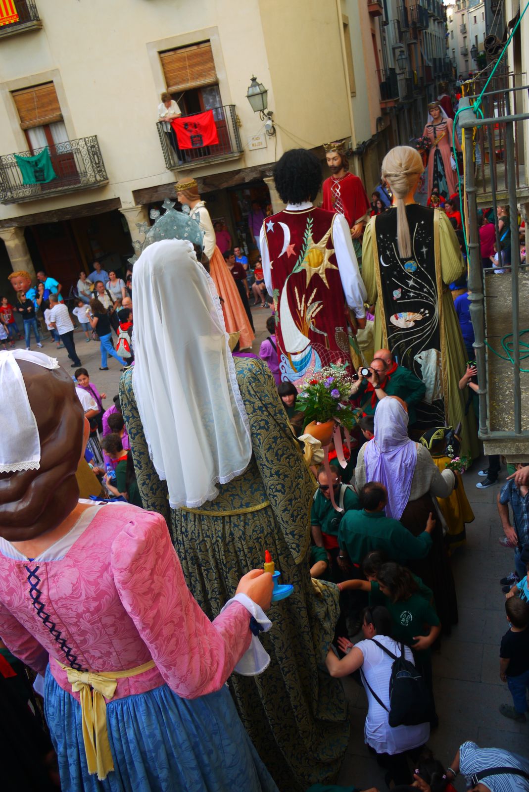 Quan la cercavila que va passar pel carrer Combat ja s’acabava em vaig adonar que per la plaça Sant Miquel estaven passant gegants i em vaig pensar que anaven carrer Major avall. Així va ser i, baixant pel passeig del Portalet, vaig poder arribat a la plaça Major abans de l’arribada de la cercavila.