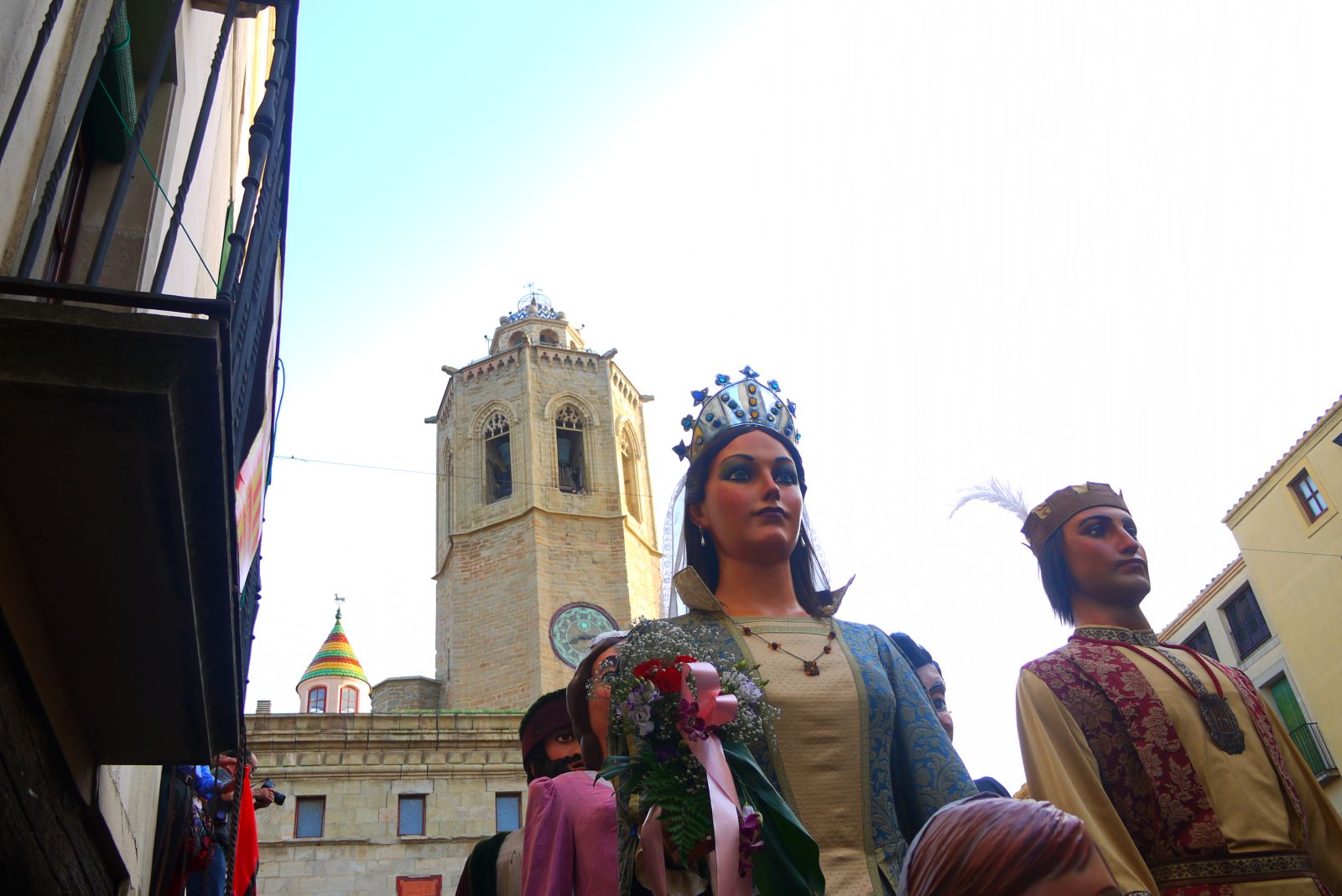 Una imatge poc habitual: la del gegants plantats en línea amb el Campanar!