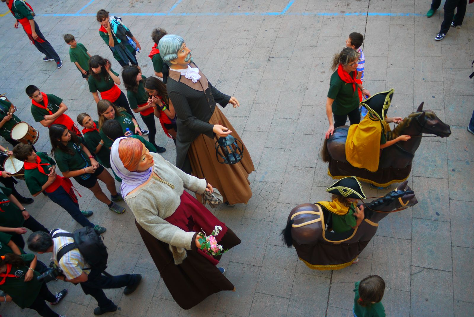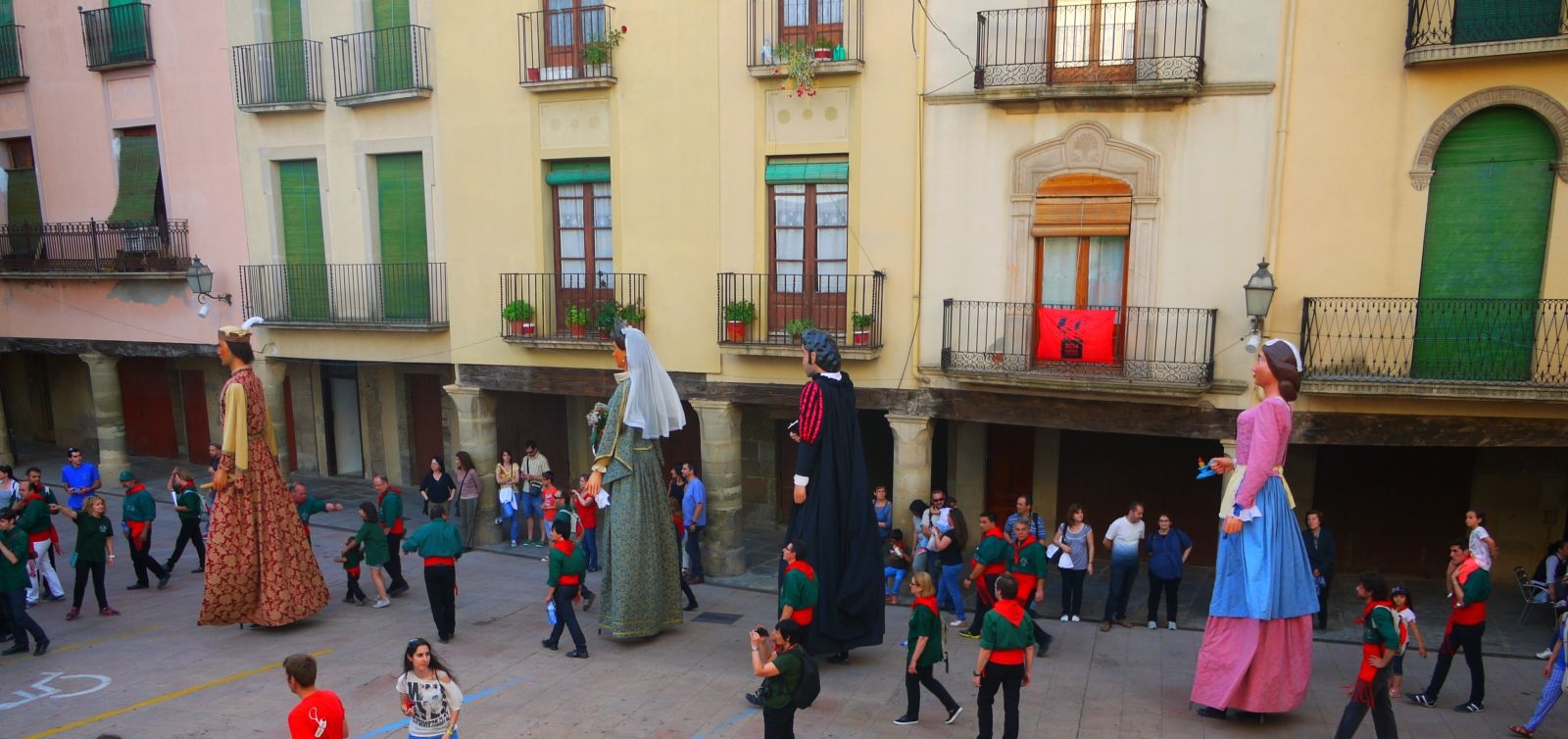Arriben a la plaça els geganters de Cervera amb els gegants de la ciutat.