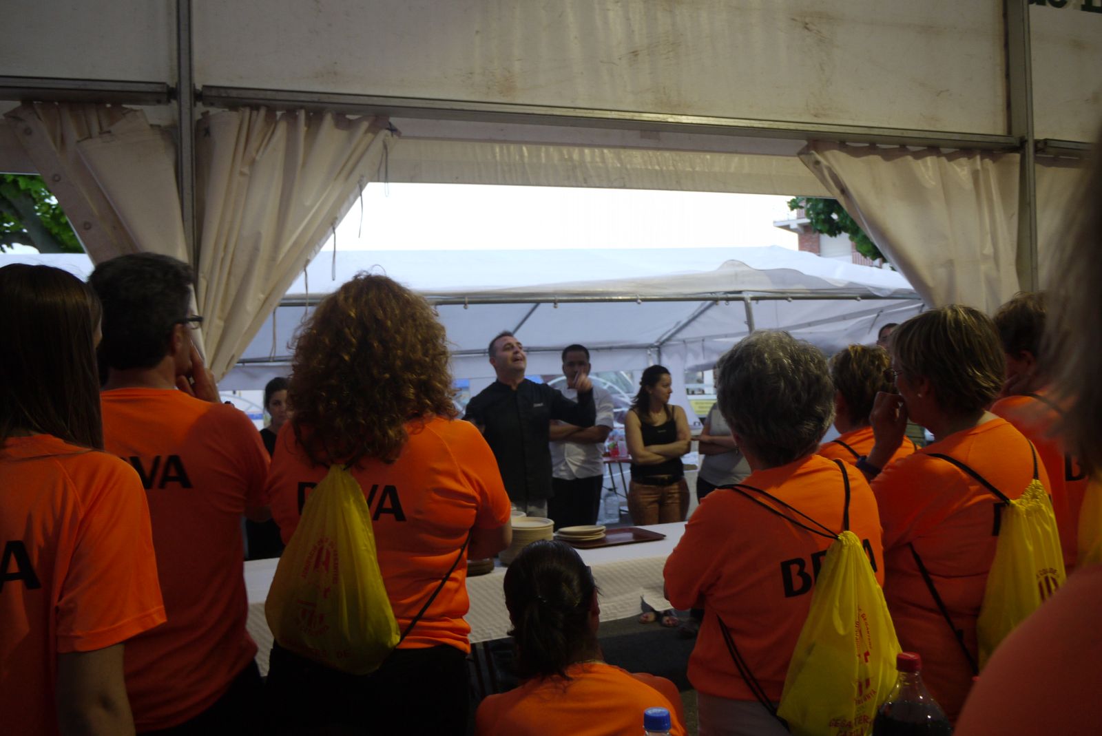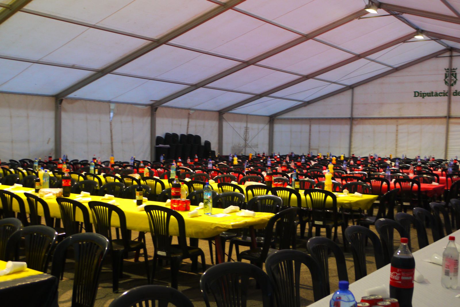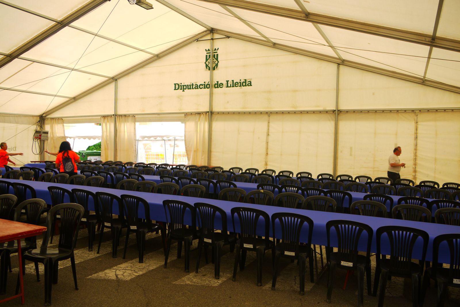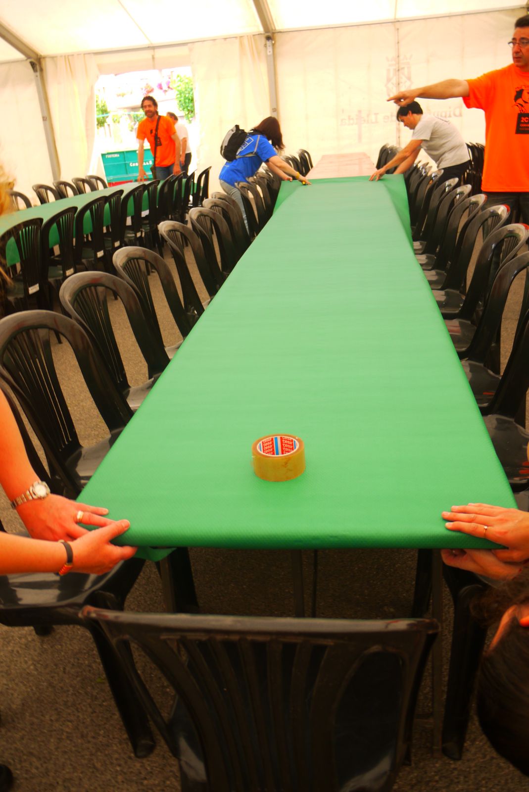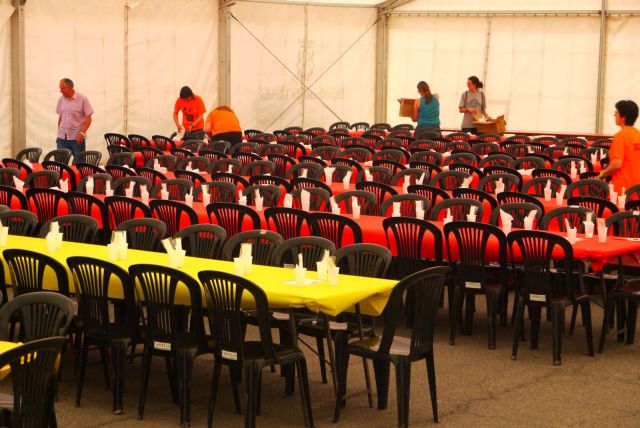 Es van parar unes taules amb les estovalles de color blanc que estaven destinades al voluntarietat. Com podeu veure s’identifiquen perfectament per les samarretes de color taronja.