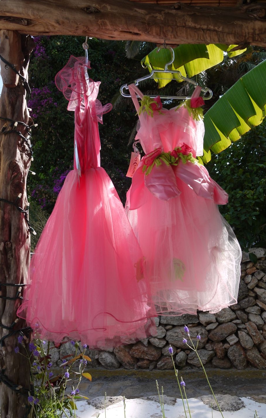 La transparència de la tela queda potenciada per la llum que, el sol de tarda, transforma aquests vestits en uns objectes plens de màgia. La timidesa d’aquests branquillons d’espígol donen el contrapunt a aquesta imatge tan suggerent.