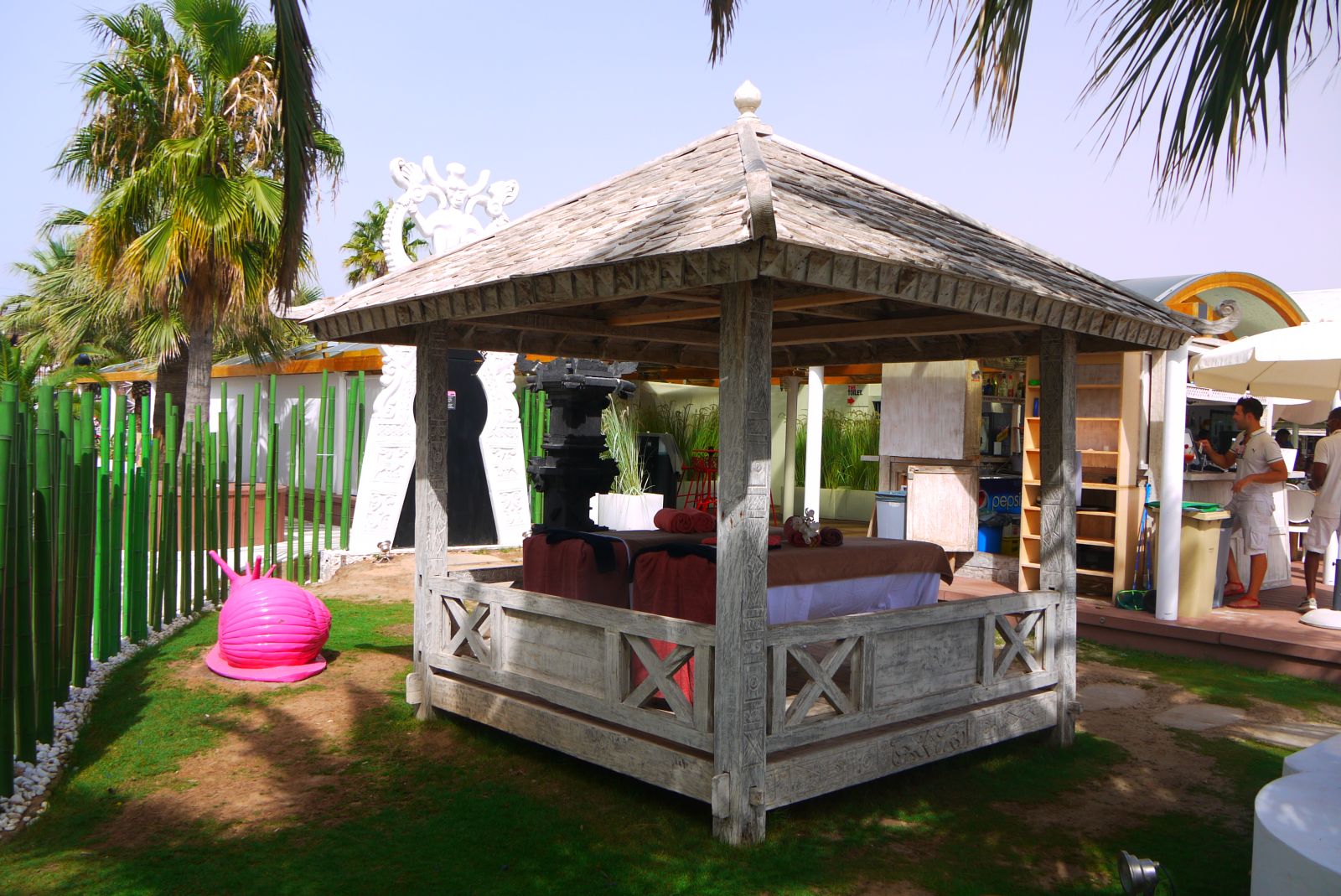 La zona on fan massatges espera a la sombra per qui vulgui relaxar-se i sentir-se a la glòria.