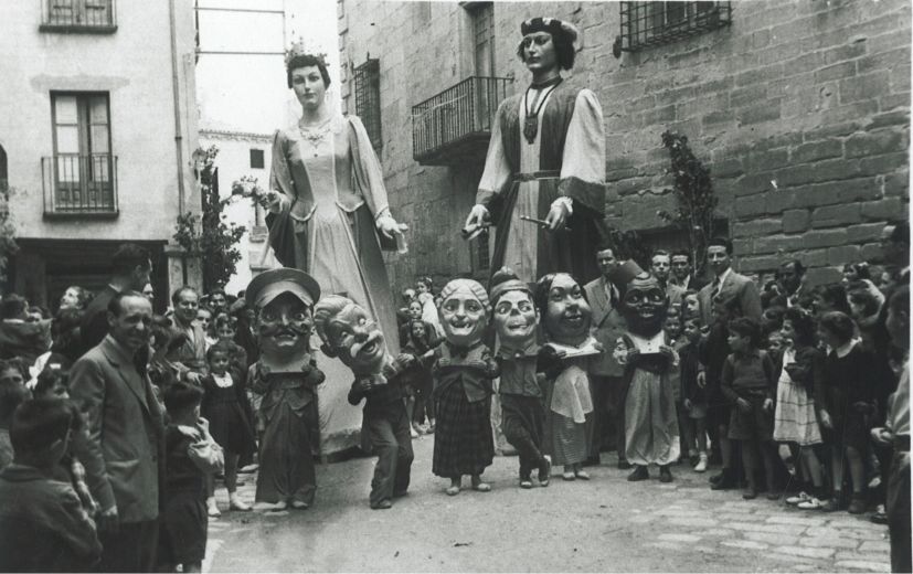 Corpus de 1948. Els gegants i sis nans de Cervera inicien la seva vida plegats. Aquest any han complert 66 anys.