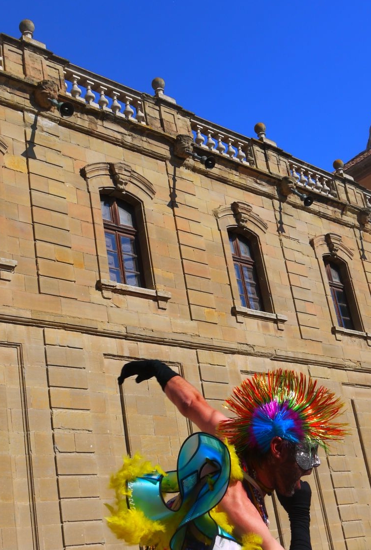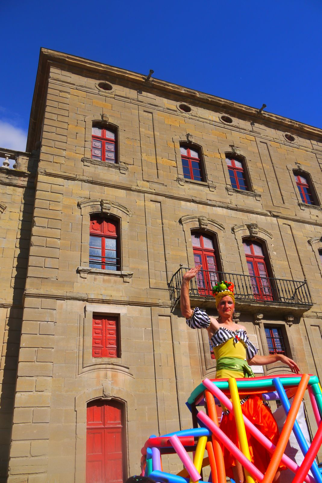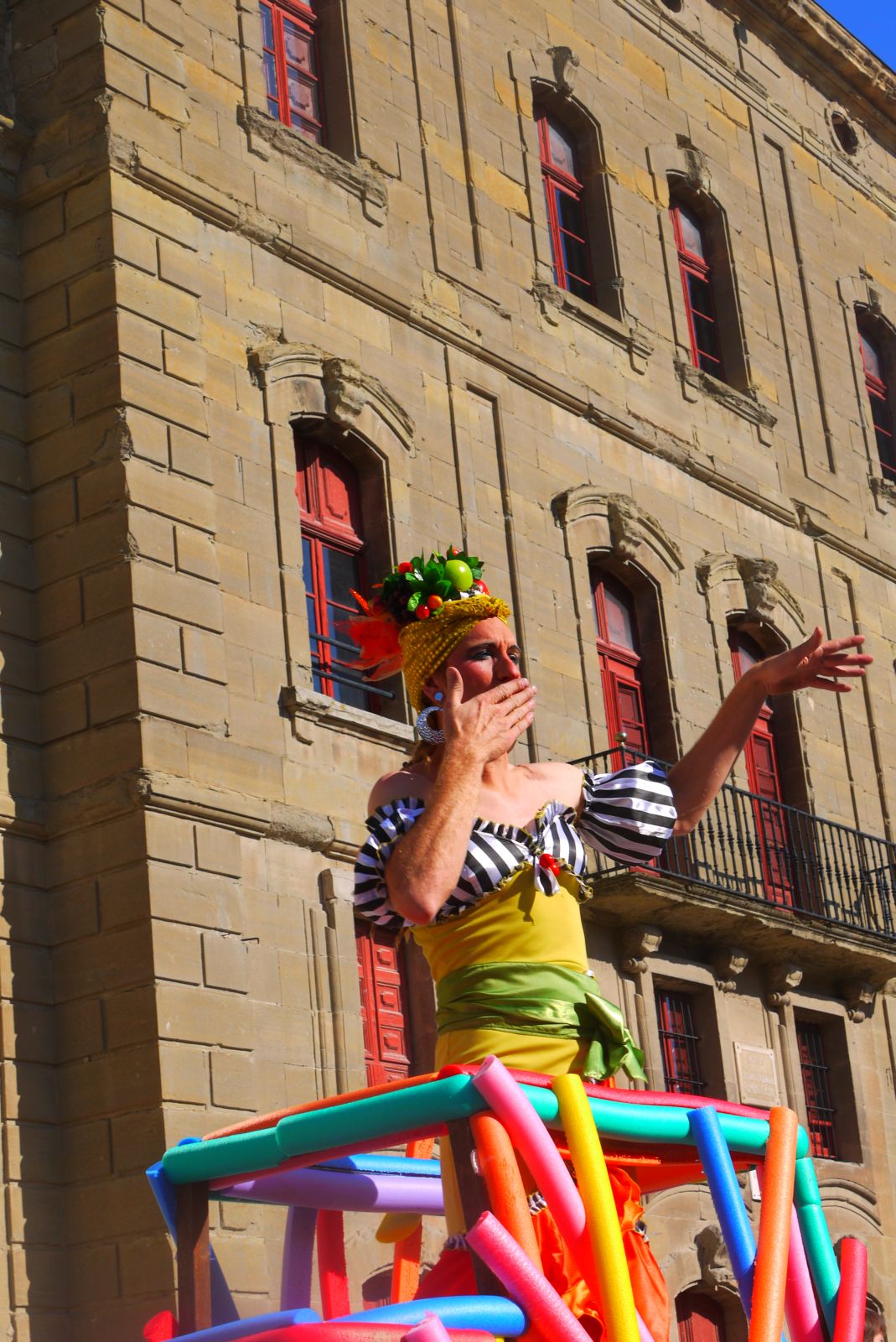 El grup d’Alea Teatre va tenir cura de la part dedicada a l’espectacle. Protagonitzaren la sortida de la Reina del Carnaval, tot i acompanyant-la des d’una considerable alçada.