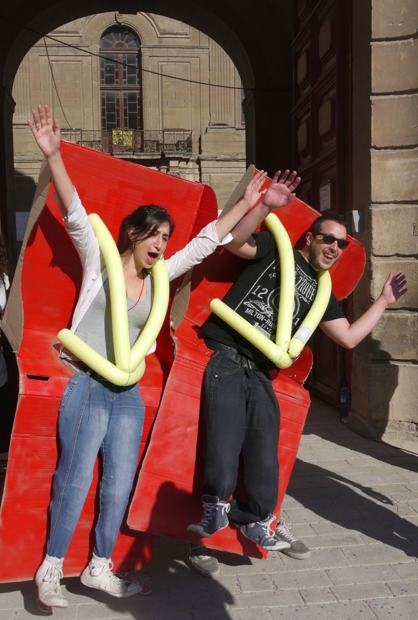 Una disfressa en parella. Anaven una mica marejats dalt d’aquesta atracció que es movia d’aquí cap allà!