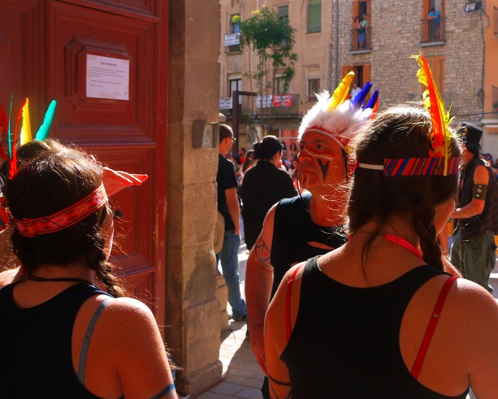 Arizona a Cervera. Un grup d‘indis arribats directament de Monument Valley es disposen a sortir per la porta de la Universitat decidits a animar la rua amb la seva música i la seva marxa.