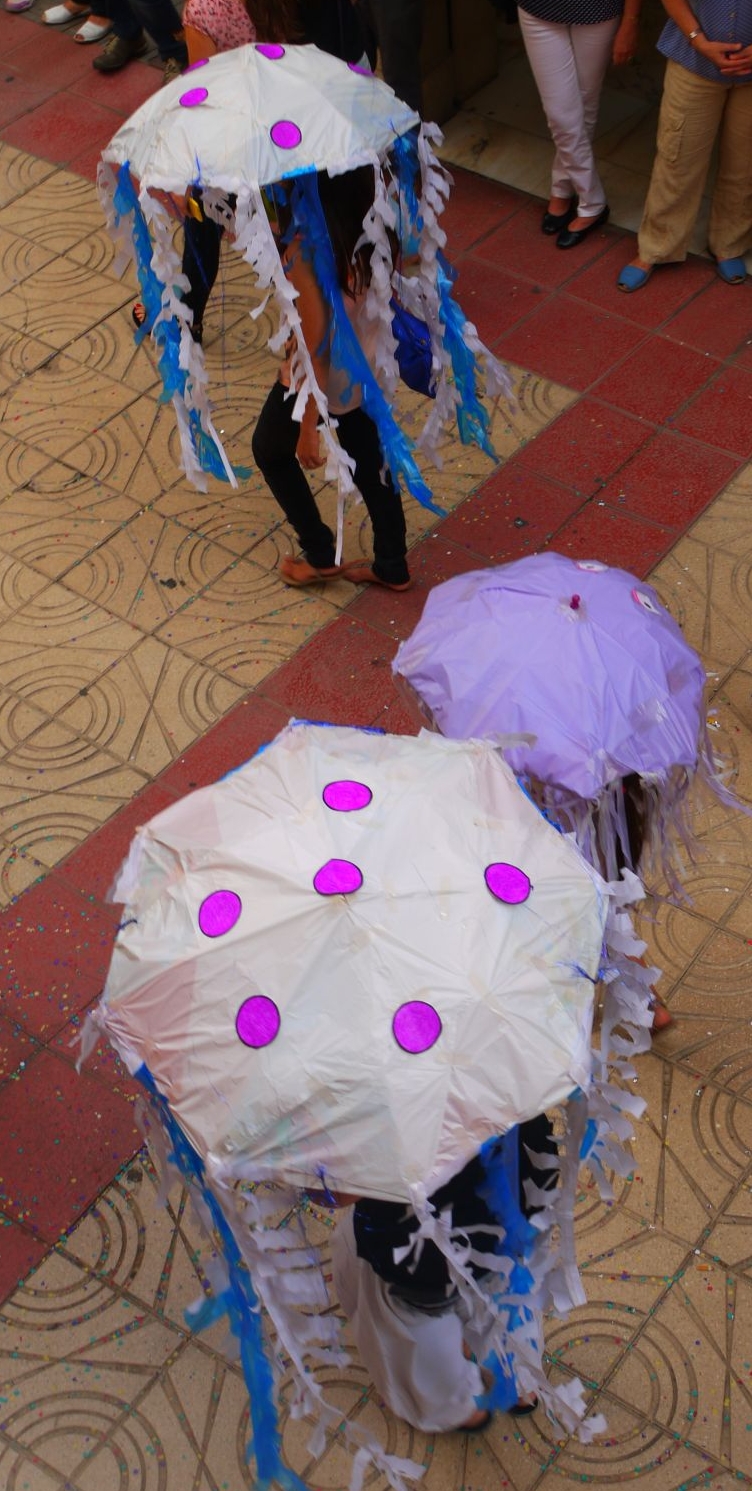 El que deia primer: van ser molts i moltes els que van espavilar-se i amb enginy van decidir sortir amb una disfressa, en aquest cas casolana, que són les més boniques i les més personalitzades. Unes meduses de terra ferma!