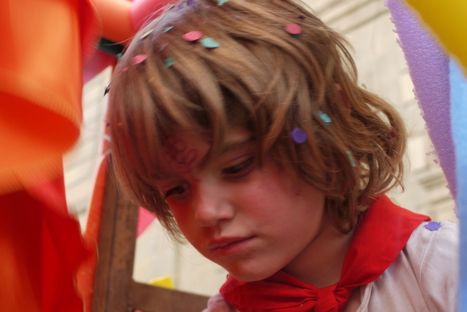 Aquesta nena, amagada dins la carrosa de la Reina del Carnaval, s’apropava a costat del seu pare que n’era l’estrella protagonista.