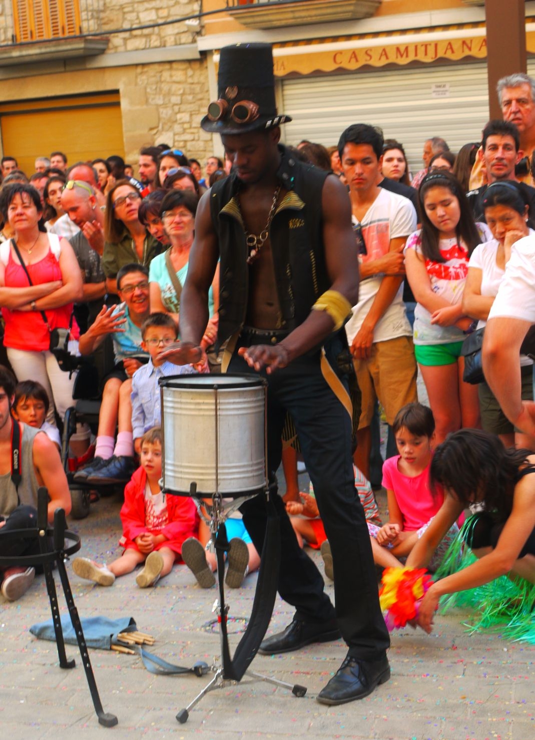 Aquest grup d’Hospitalet de Llobregat va oferir un magnífic espectacle. A part de la música, les seves evolucions ballant van agradar tothom. En aquestes imatges els podeu veure oferint moments de contrast: tan aviat sembla que s’enllacin per ballar un símil de sardana, com ens criden l’atenció tot i saltant amb empenta i molt entusiasme.
