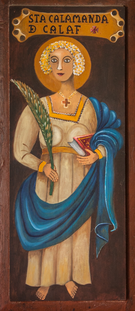 Les quatre pintures que protagonitzen tres sants i una santa, estan dedicades als que es veneren en aquestes contrades properes a Cervera, i formen part de la decoració d’una porta.