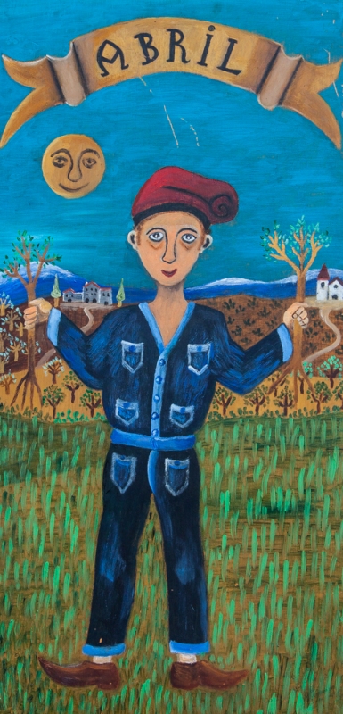 La composició formada per tots els mesos de l’any aporta frescura i color. Podeu veure-hi els trets caractrístics de la pintura naïf.