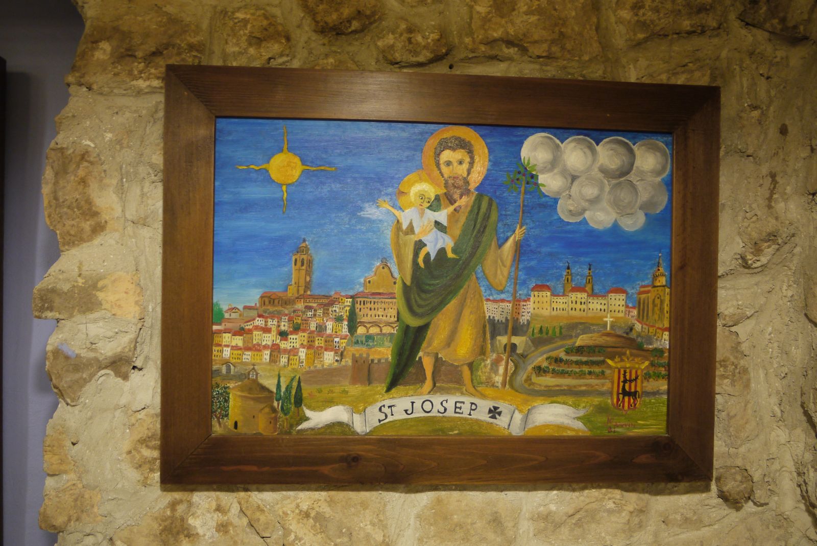 Amb la paret de pedra de “el Campanar” al fons, feien molt goig. Aquest Sant Josep està molt ben acompanyat amb tots els edificis importants de Cervera.