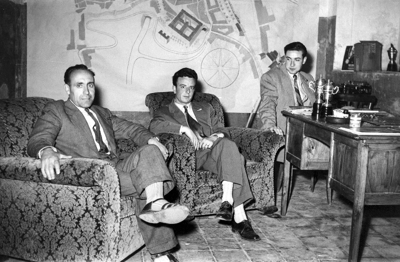També presidí, en gran tamany, una paret de l’Ajuntament. El podem veure al darrera d‘Antonio Xuclà, el Paer en Cap. L’home que està a la seva dreta és el Pepe Riu.