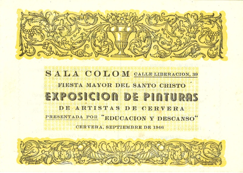 Curiós anunci d’una exposició col·lectiva a la Sala Colom anunciada al 1946. Cal Colom devia estar,abans de romandre tocant a la plaça Major, ubicada al carrer Loberación (avui Combat)?