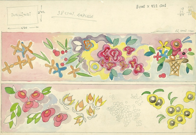 Va realitzar nombros treballs oruentats a la decoració. Dibuixava sanefes amb composicions molt encertades que després aplicava en diferents espais de la llar familiar al carrer Major. Les habitacions quedaven embellides amb aquests conjunts decoratius que, la majoria, encara avui es poden admirar.