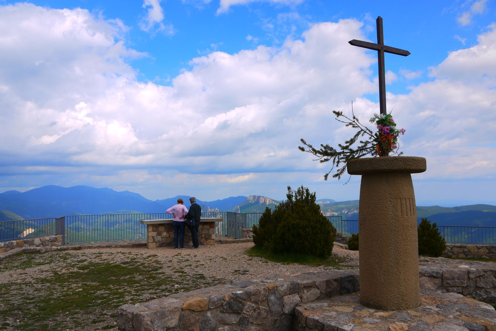 Des del Mirador de la Creu del Codó es veu tota la vall de Lord, amb el Santuari de la Mare de Déu de Lord, penjat dalt d’una muntanya.
