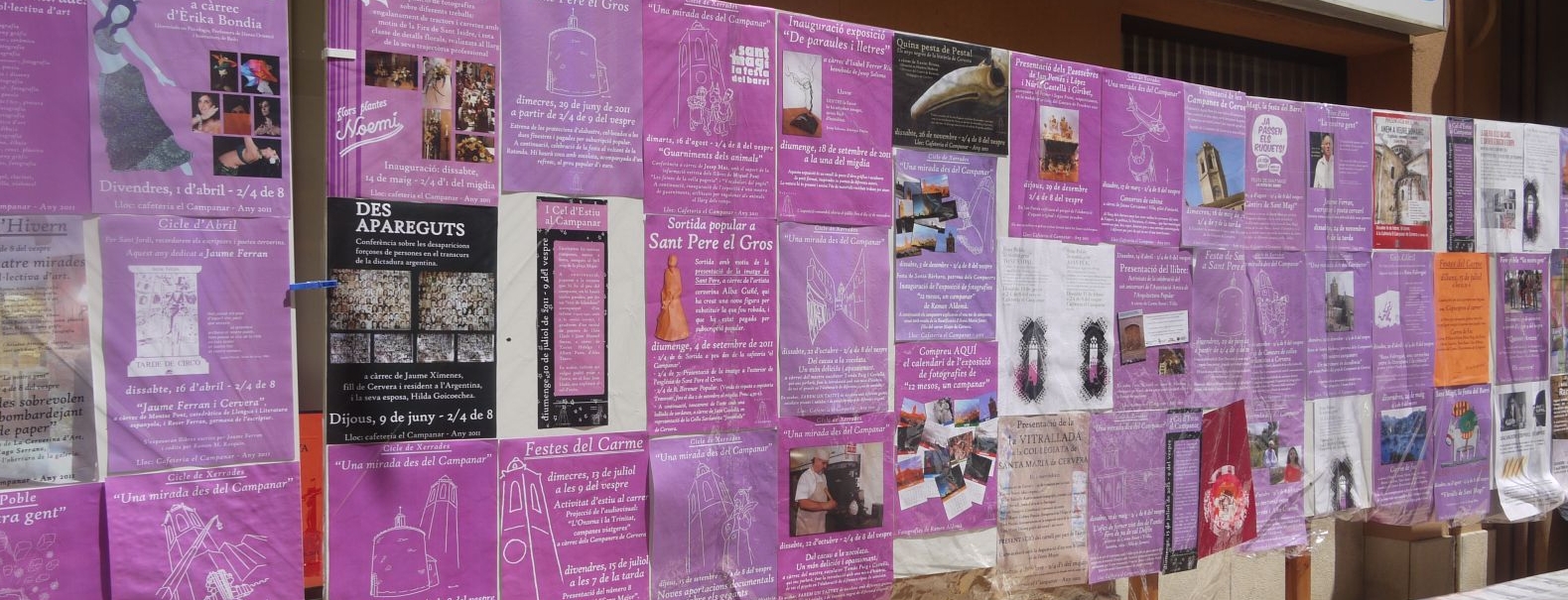 Tots els cartells anunciadors dels actes realitzats al llarg d’aquests cinc anys estaven enganxats en uns grans expositors per tal de que tothom els veiés amb comoditat.