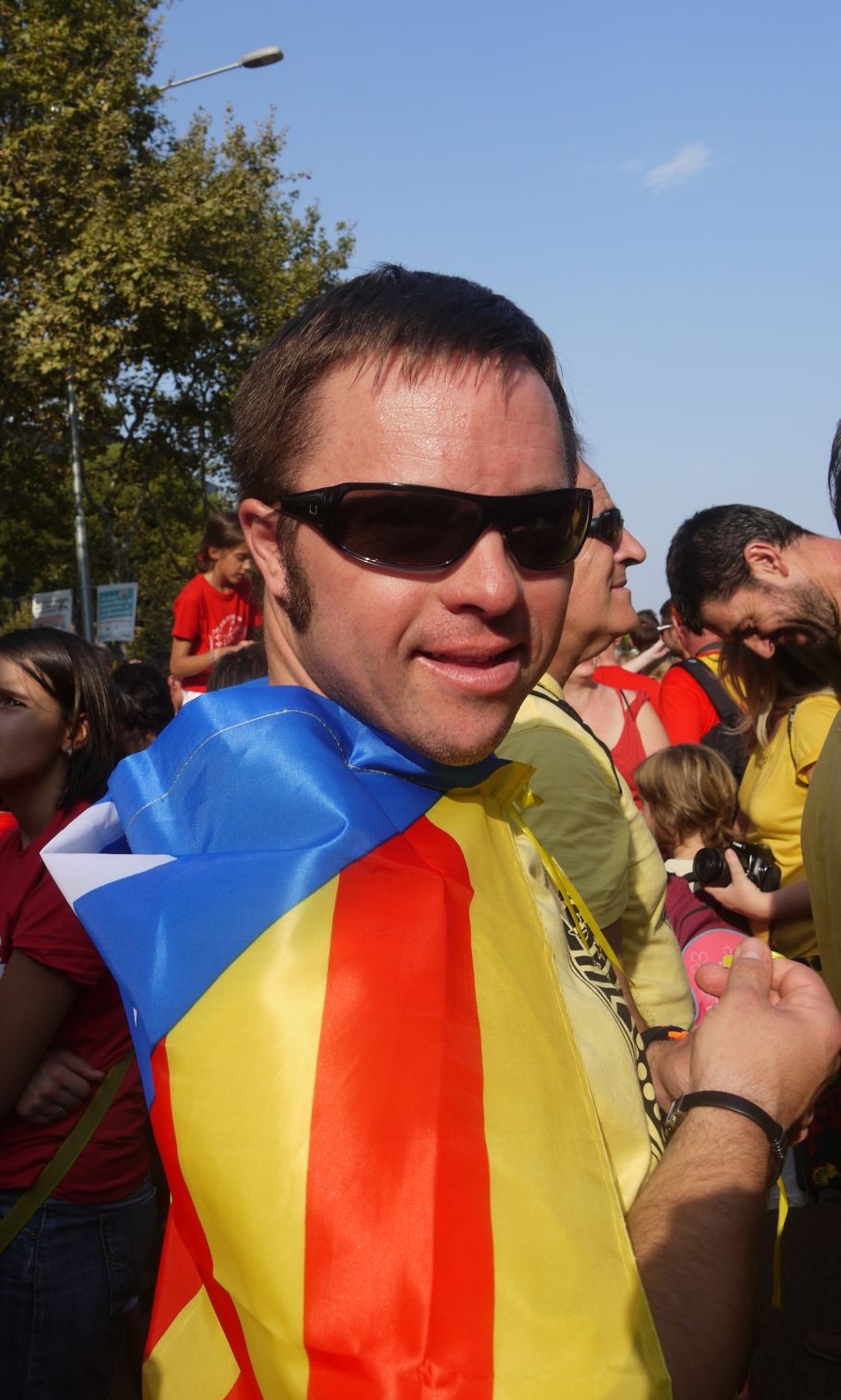 De la Segarra i de Cervera hi havia moltíssima gent. Per tant avui ja podreu veure cares conegudes. Enceto el post amb l’Antonio Nadal que tota l’estona va fer voleiar l’estelada en el tram on estàvem els de Cervera.