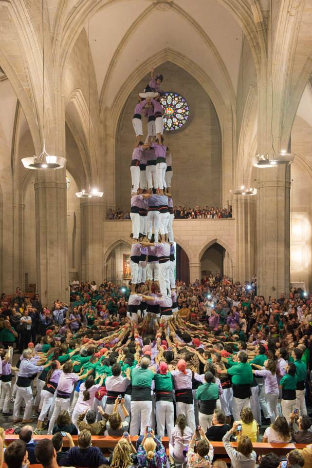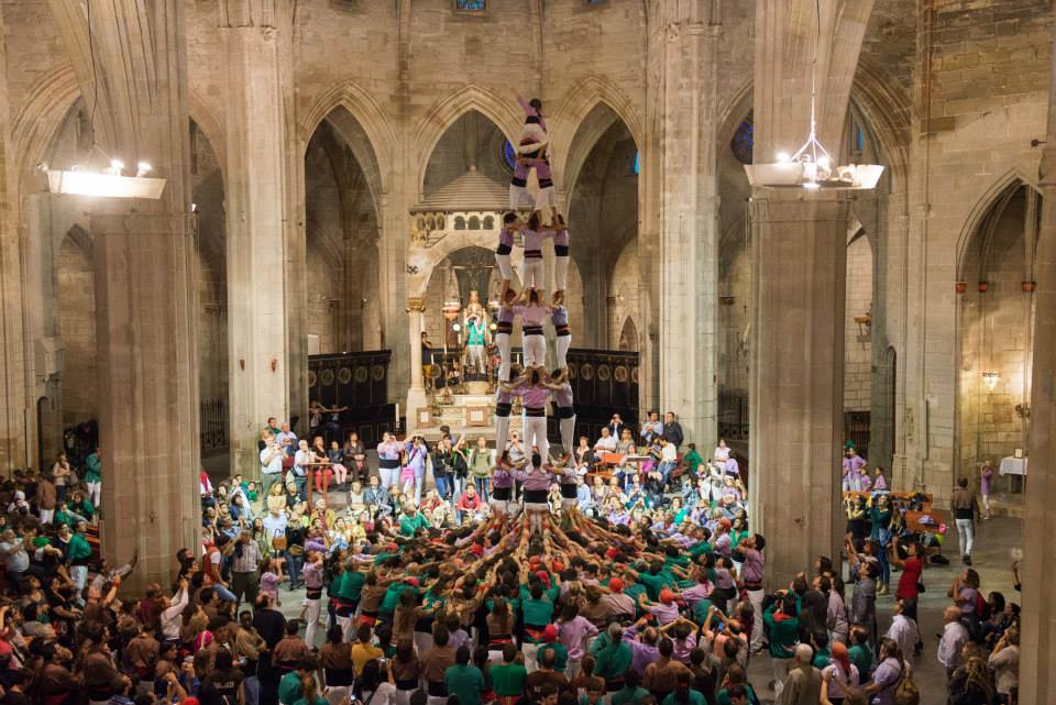 Em permeto afegir al post unes imatges que he capturat a la web de la Paeria i que són espectaculars, ja que mostren l’acte programat com a Diada Castellera i que, al no acompanyar el temps, es va traslladar a l’interior de l’església de Santa Maria. Les fotografies són fantàstiques i suposo que el seu autor és el fotògraf Jordi Prat.
