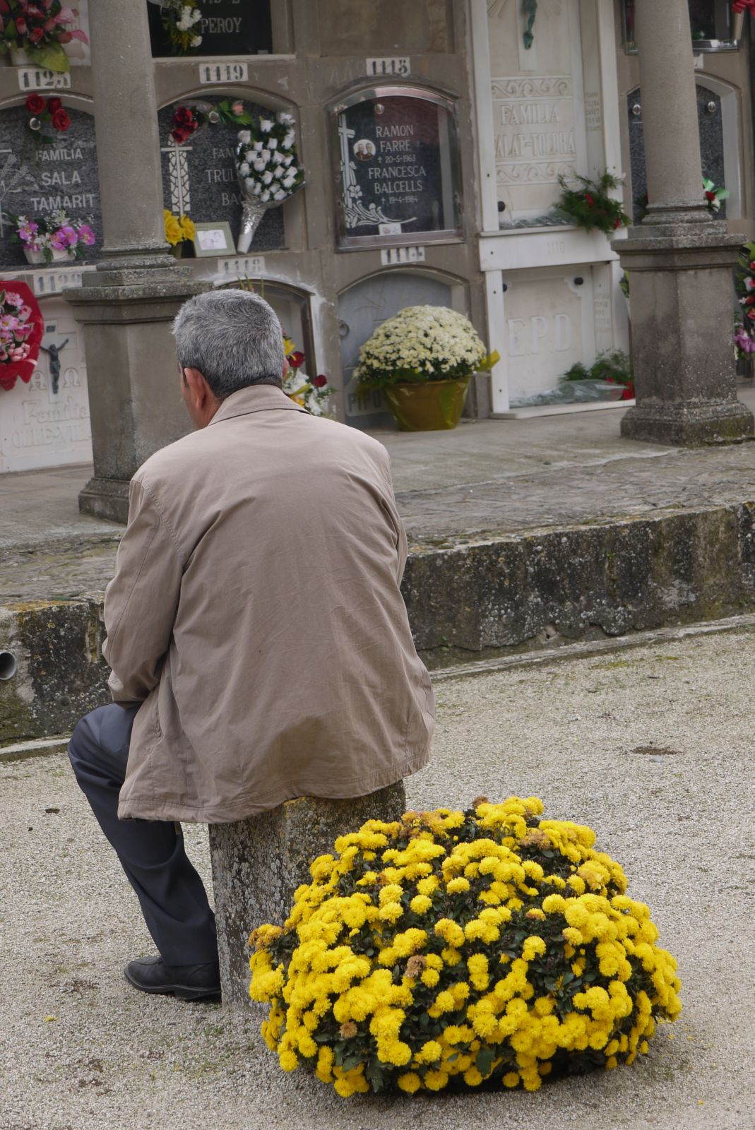 M’agrada molt aquesta fotografia que encapçala el post. Ens transmet tot un seguit d’actituts personals per part del protagonista: recolliment, concentració, tranquilitat, recordança, aillament, serenitat… així com també la cura en que tothom té en personalitzar l’espai on reposen els seus i que queda reflexat en els diferents estils i maneres de disposar les flors.
