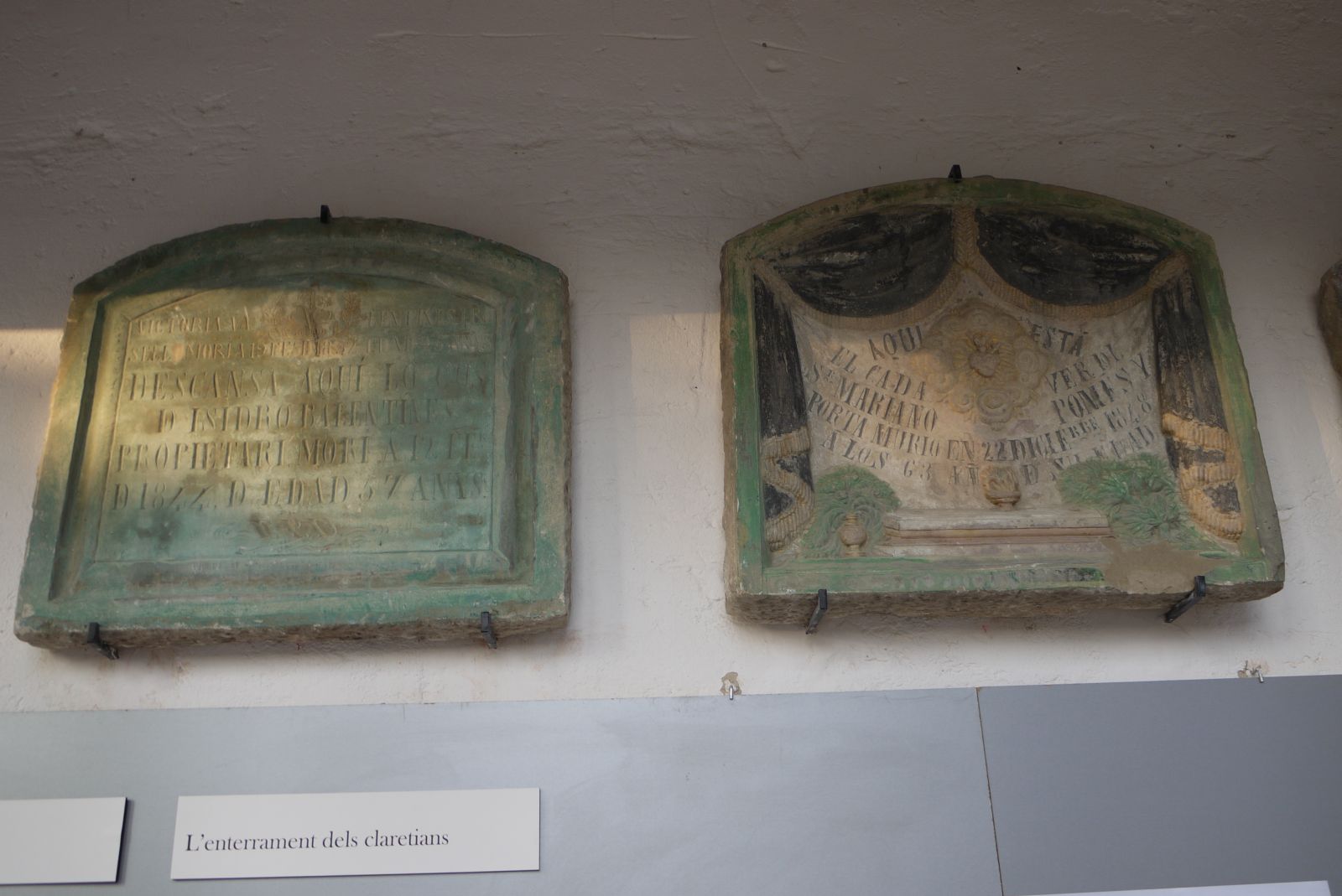 La Mostra de làpides antigues ofereix al visitant la possibilitat de contemplar amb detall aquests elements ornamentals. Aquesta imatge correspon a les làpides presentades en les dues edicions anteriors que resten exposades d’una manera permanent en aquest espai.