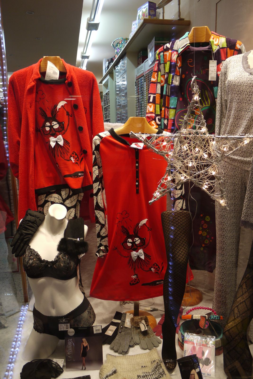 El vermell i el negre, tan vinculats a aquestes festes, protagonitzen aquest aparador que combina peces atractives i còmodes d’ús diari amb sug·gerents i atractius conjunts de roba interior per dies especials. A Merceria Riera trobareu tot això i més.