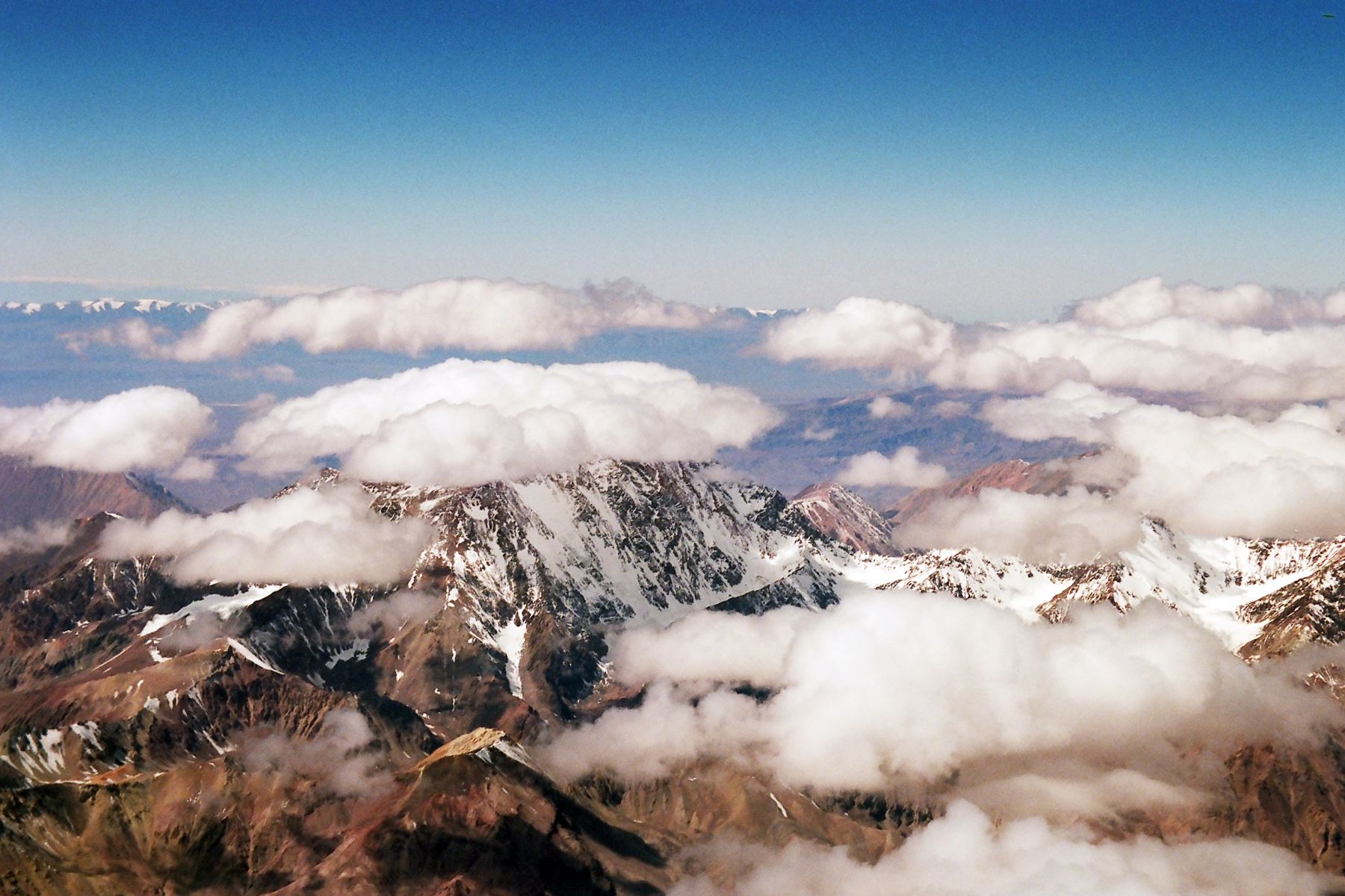 Havia creuat la cordillera andina algunes vegades per aquest punt però sempre hi havia núvols que tapaven el paisatge. En el darrer viatge que vaig fer a Santiago de Xile em vaig quedar bocabada amb el que vaig contemplar. Un cel net, sense núvols, deixava veure tot el paisatge. Un paisatge que s’assemblava a un desert. I jo portava la màquina a la maleta.