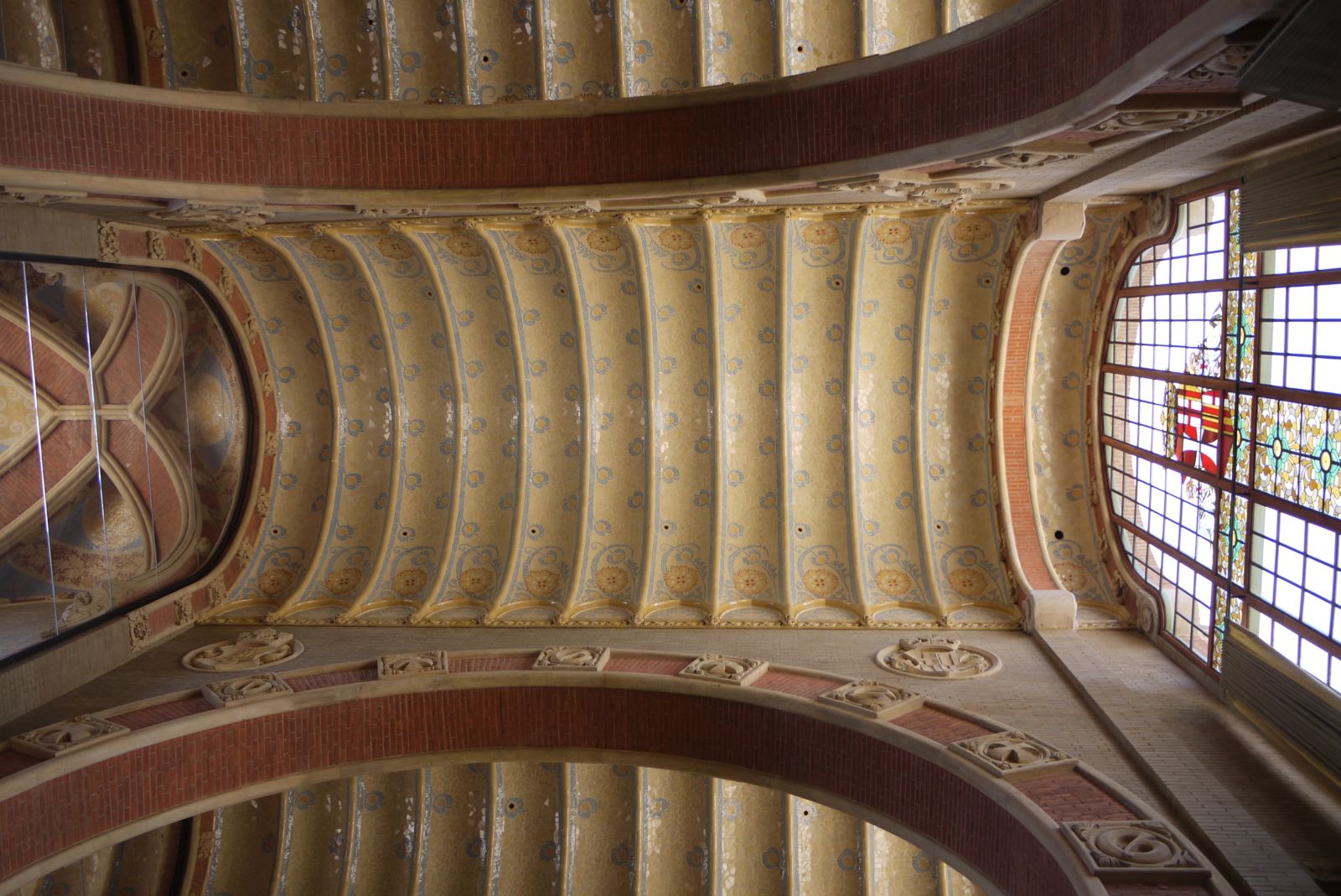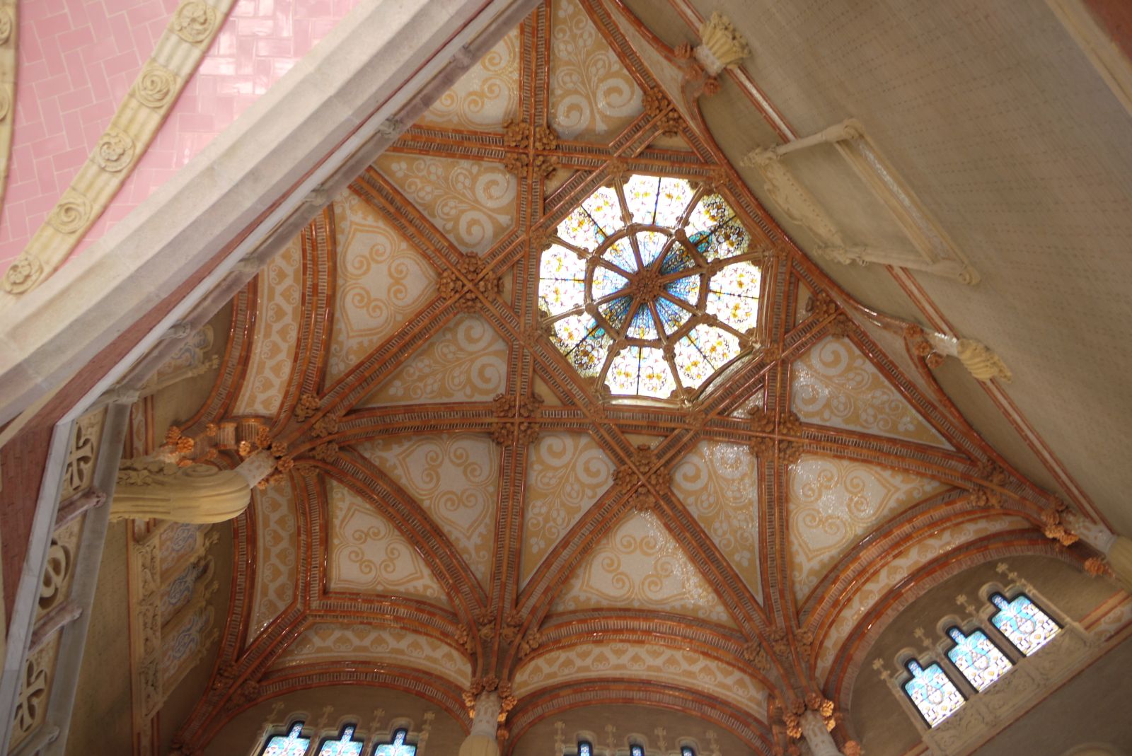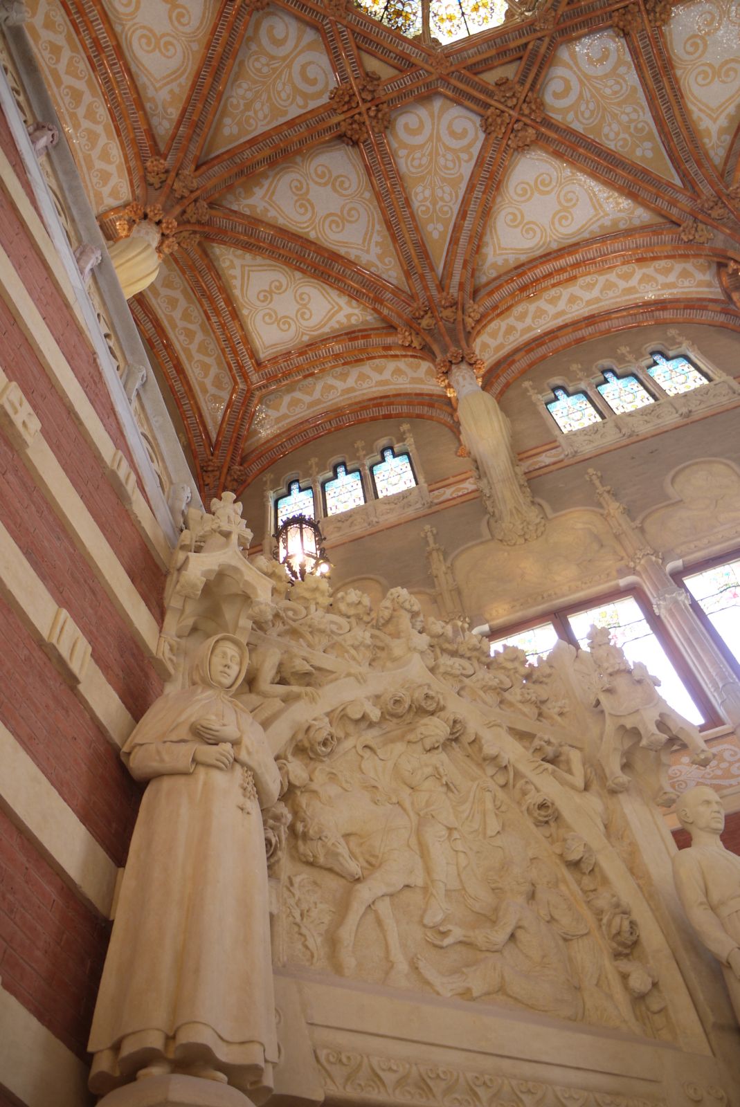 L’arquitecte Lluís Domènec i Montaner, autor del projecte, en aquest edifici principal utilitza diferents estils arquitectònics d’una manera magistral i ordenada fent servir elements gòtics, neigòtics, mozàrabs… També hi trobarem una estructura d’arcs i de columnes que representen un jardí de plantes medicinals.