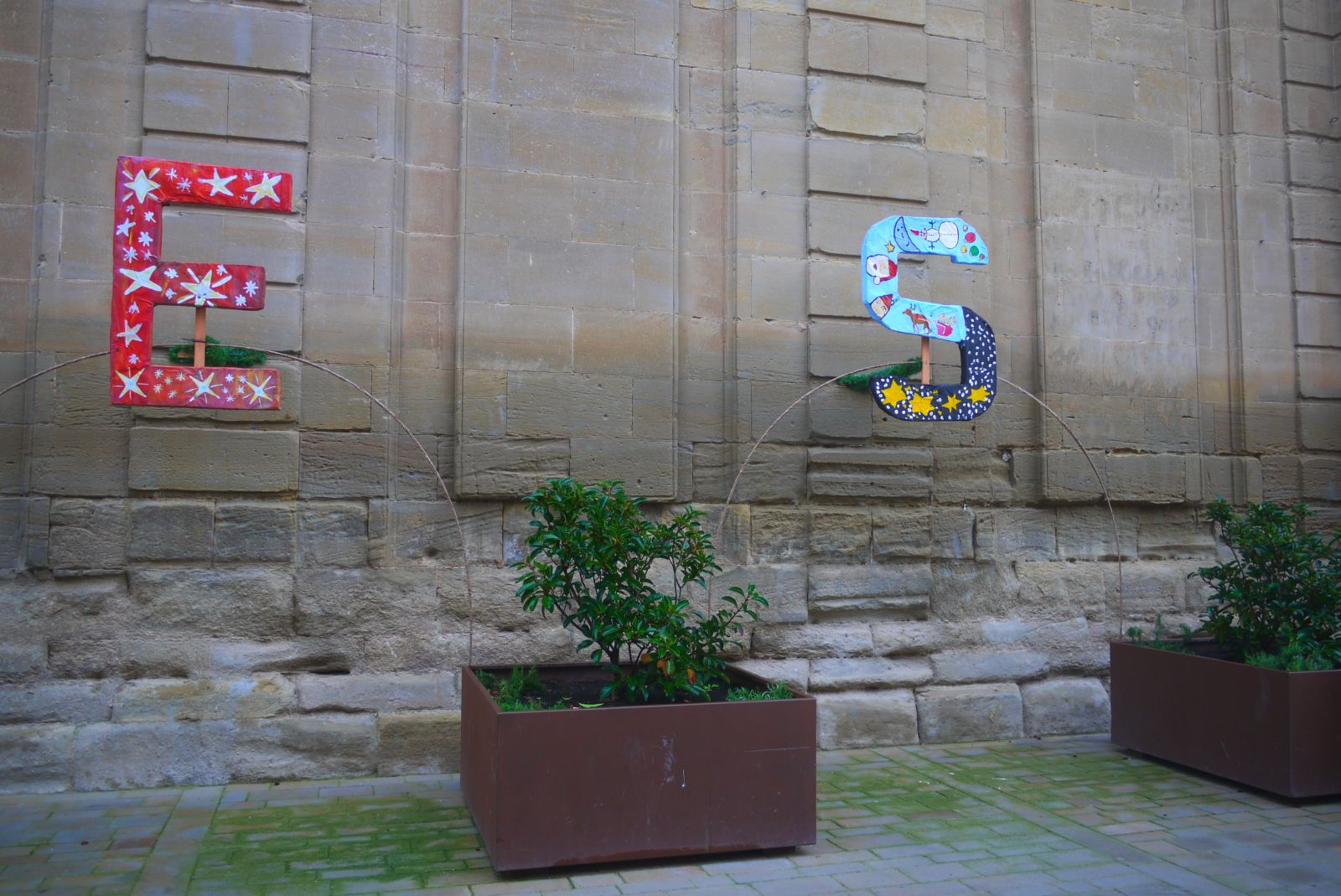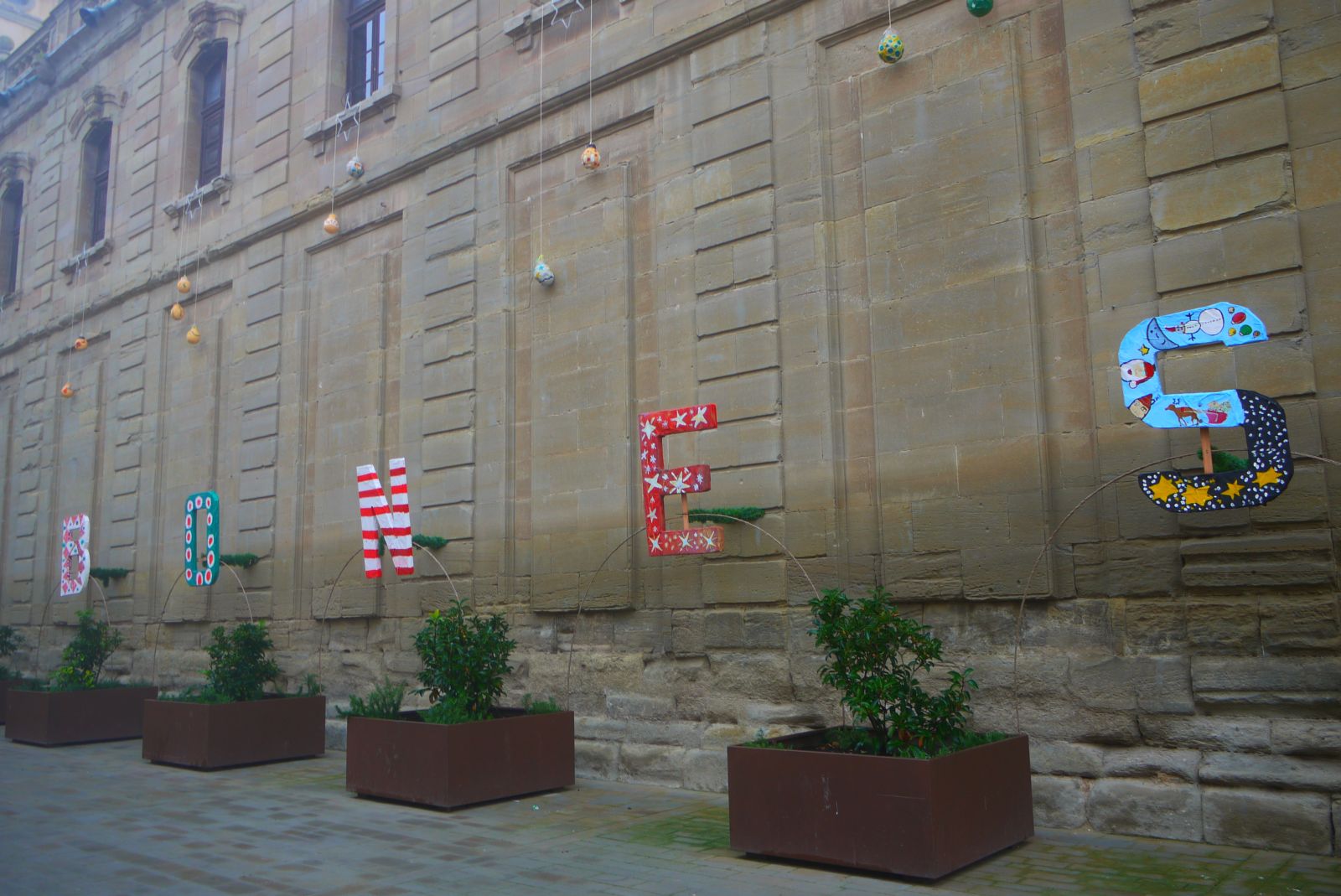 Els alumnes de l’Institut Antoni Tarroja van decorar la façana de la Universitat amb tot un conjunt de treballs creatius i originals. Boles penjades des de les finestres i unes lletres molt grans desitjant BONES FESTES van ser el elements triats per tots ells i elles.