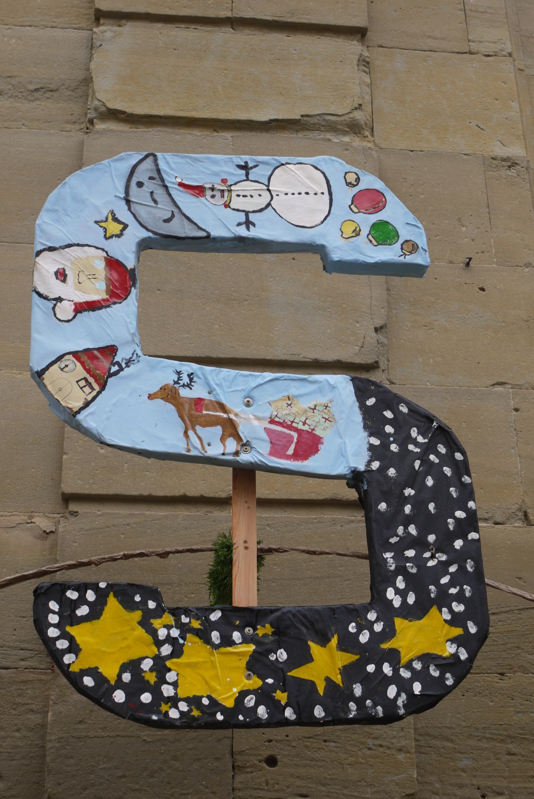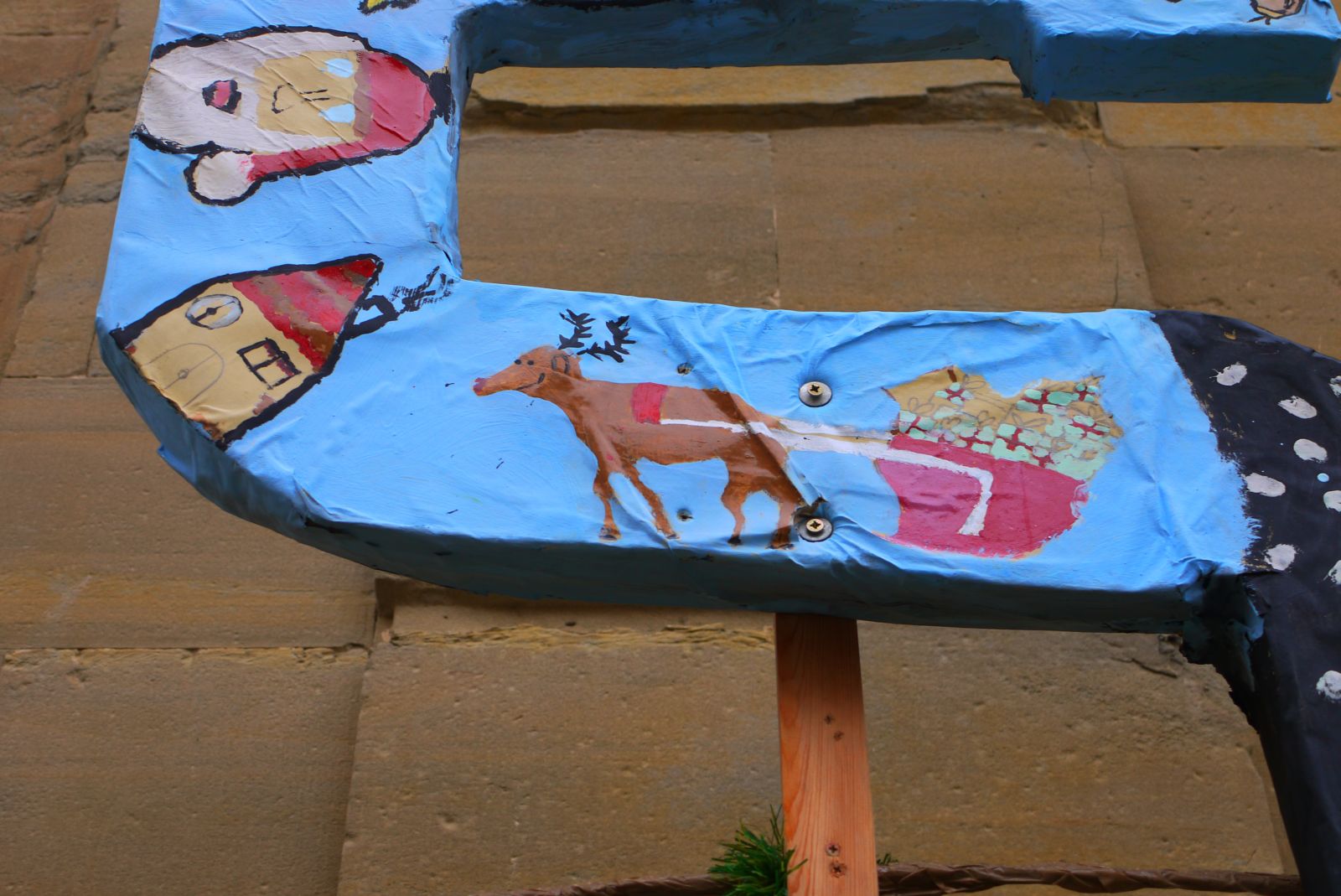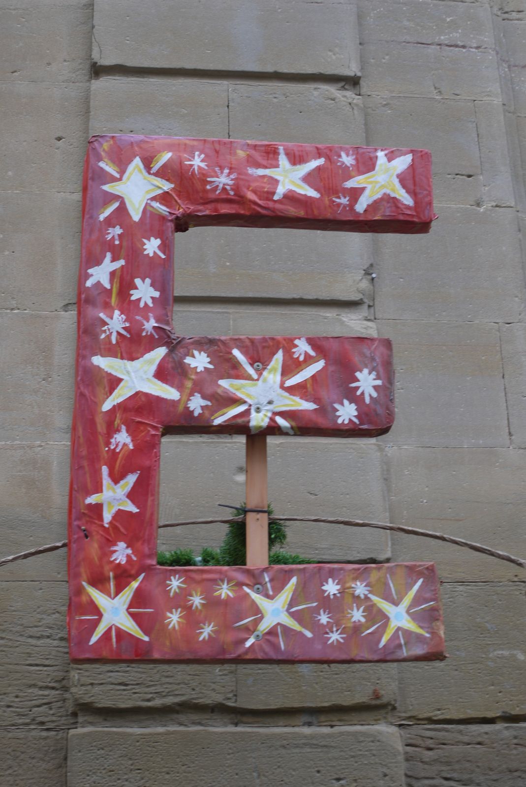 Deixo constància de com van decorar i dissenyar aquestes grans lletres que, per primera vegada, felicitaven les festes des de la façana d’aquest vell i bell edifici.
