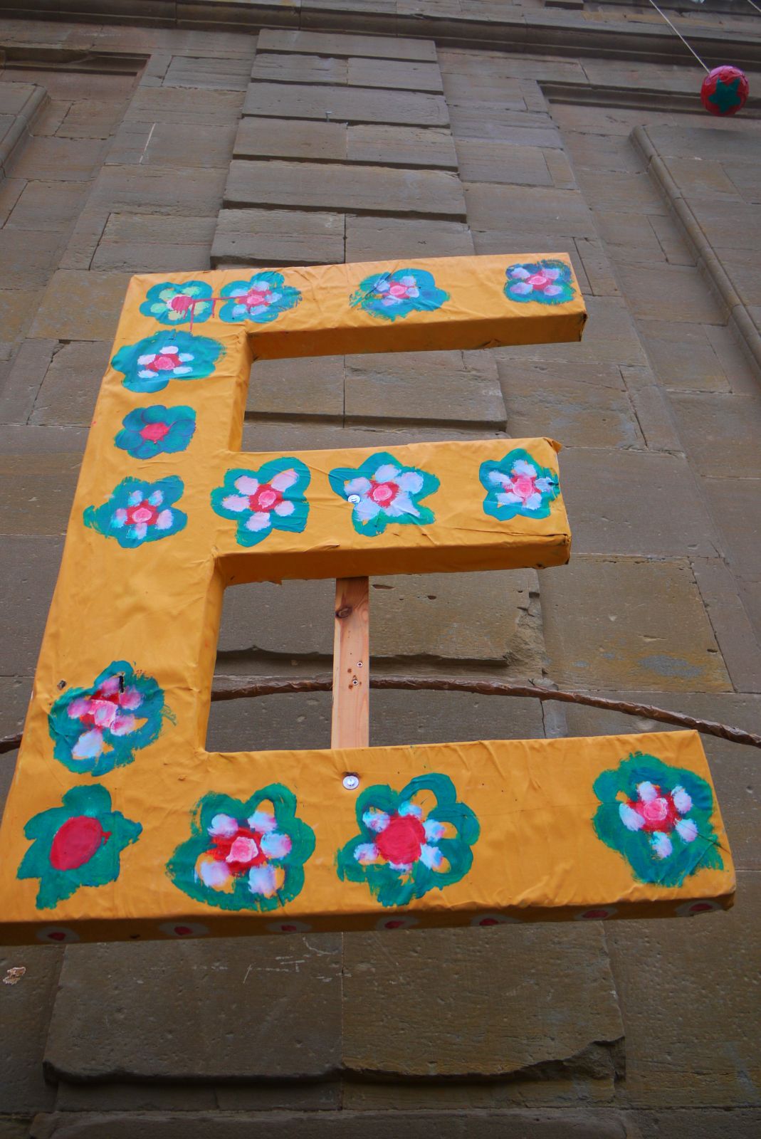 Cal fixar-se en la manera en que van disposar el muntatge per tal de no malmetre la façana i, que cadascuna de les lletres, s’aguantés ben dreta.