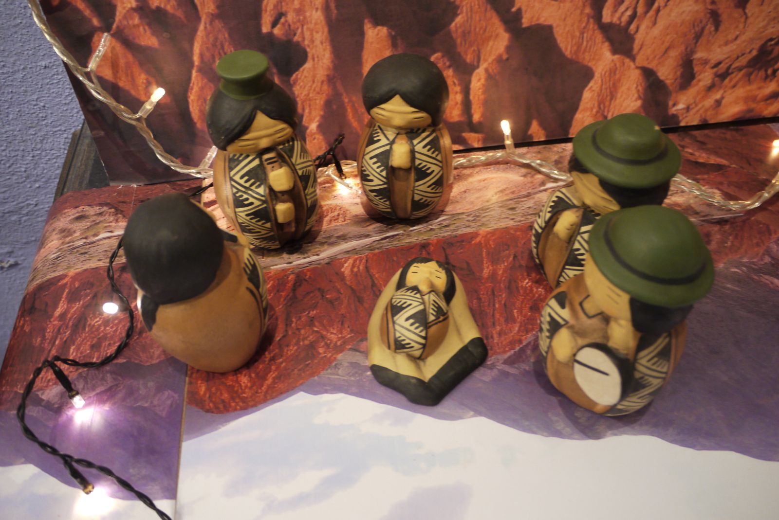 Les figures del pessebre són d’artesania indígena, molt apropiades en aquesta ambientació.
