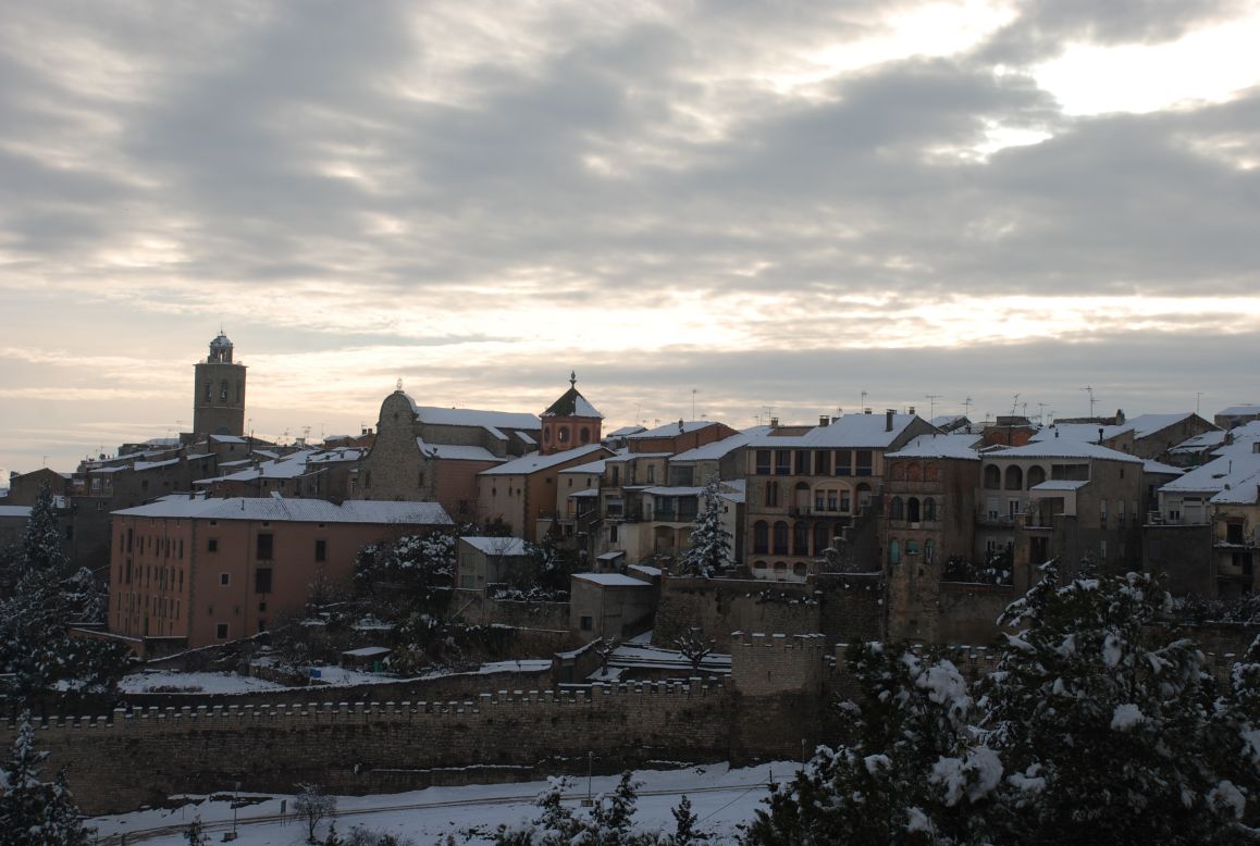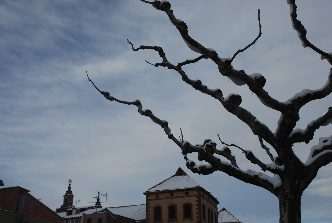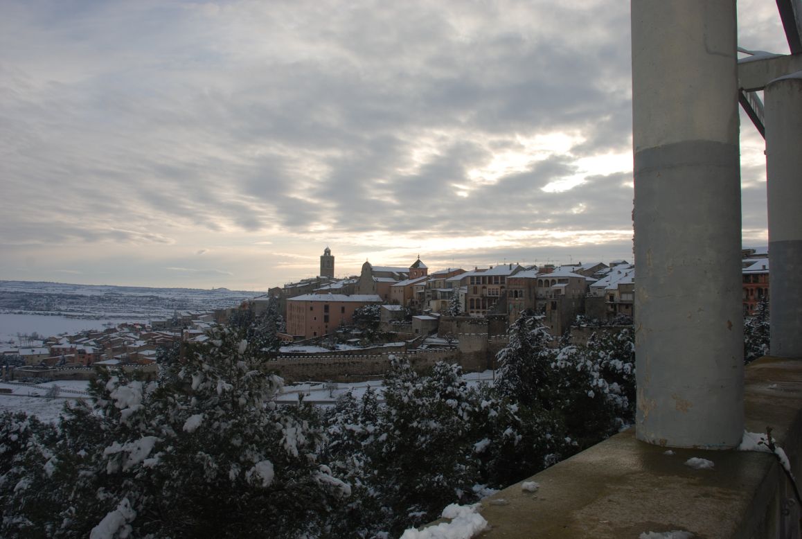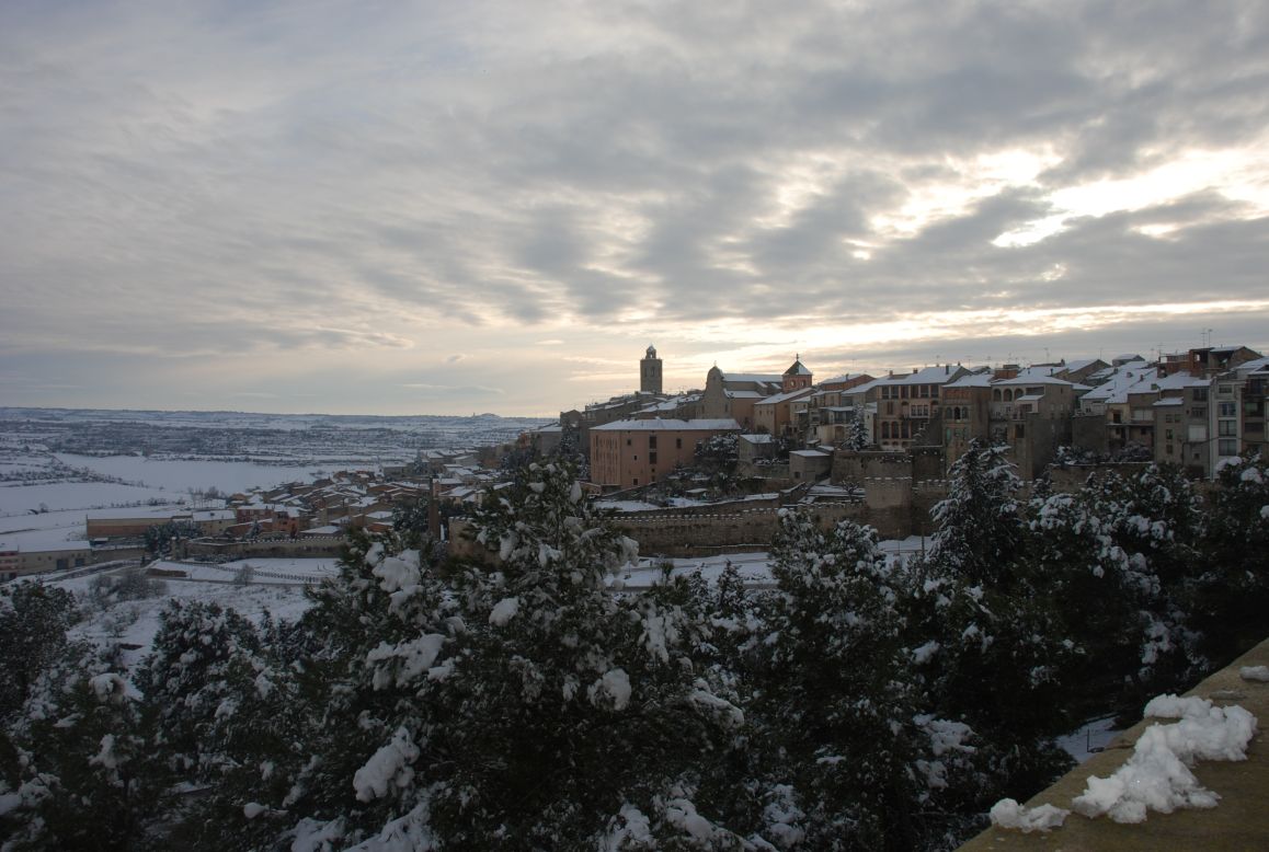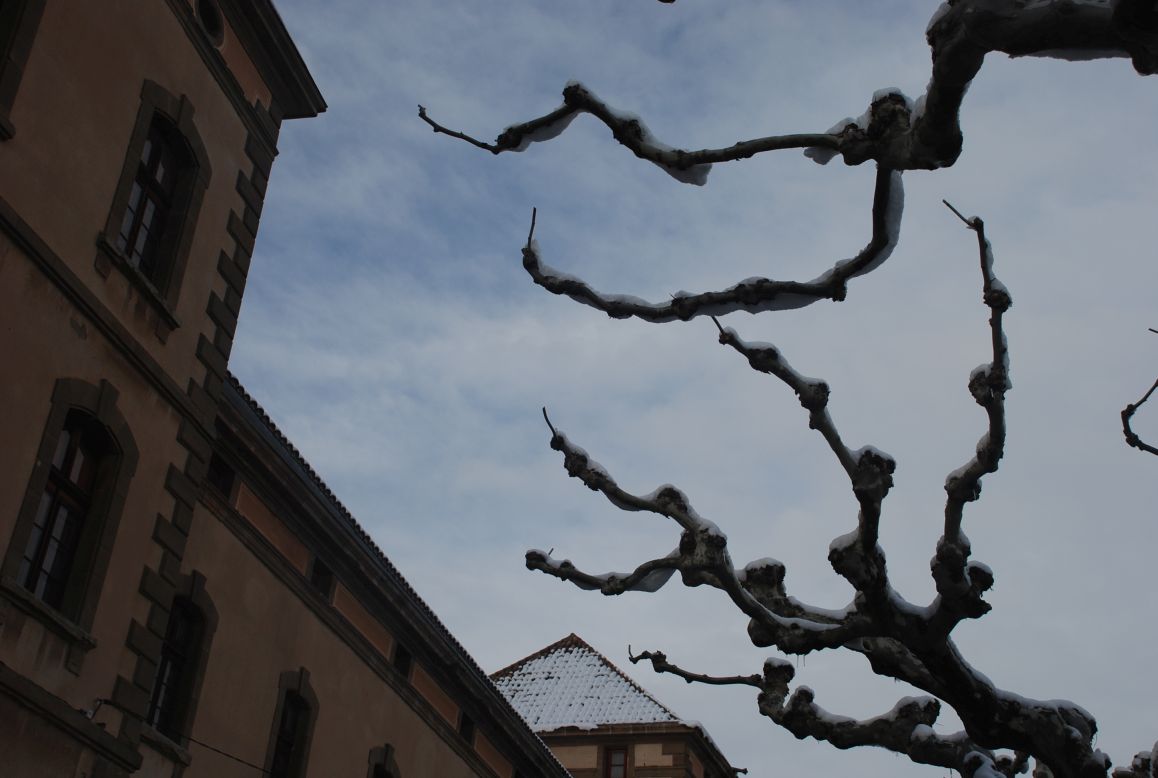 En aquest post trobareu unes quantes imatges més de Cervera fetes el dia de la nevada. En aquesta hora el cel encara estava tenyit de plom ja que no va ser fins més tard que van aparèixer els rosats i els vermellosos. Alehores ja no vaig poder fer fotografies perquè tenia el compromís d’acabar de muntar una exposició.