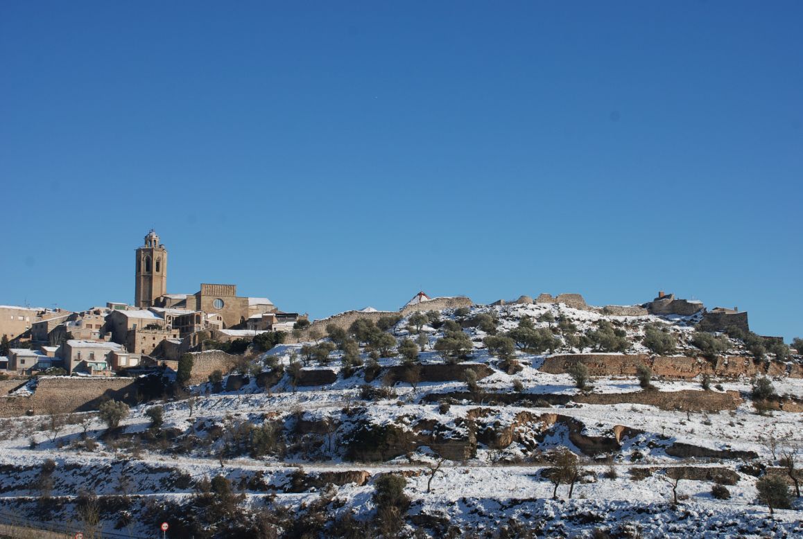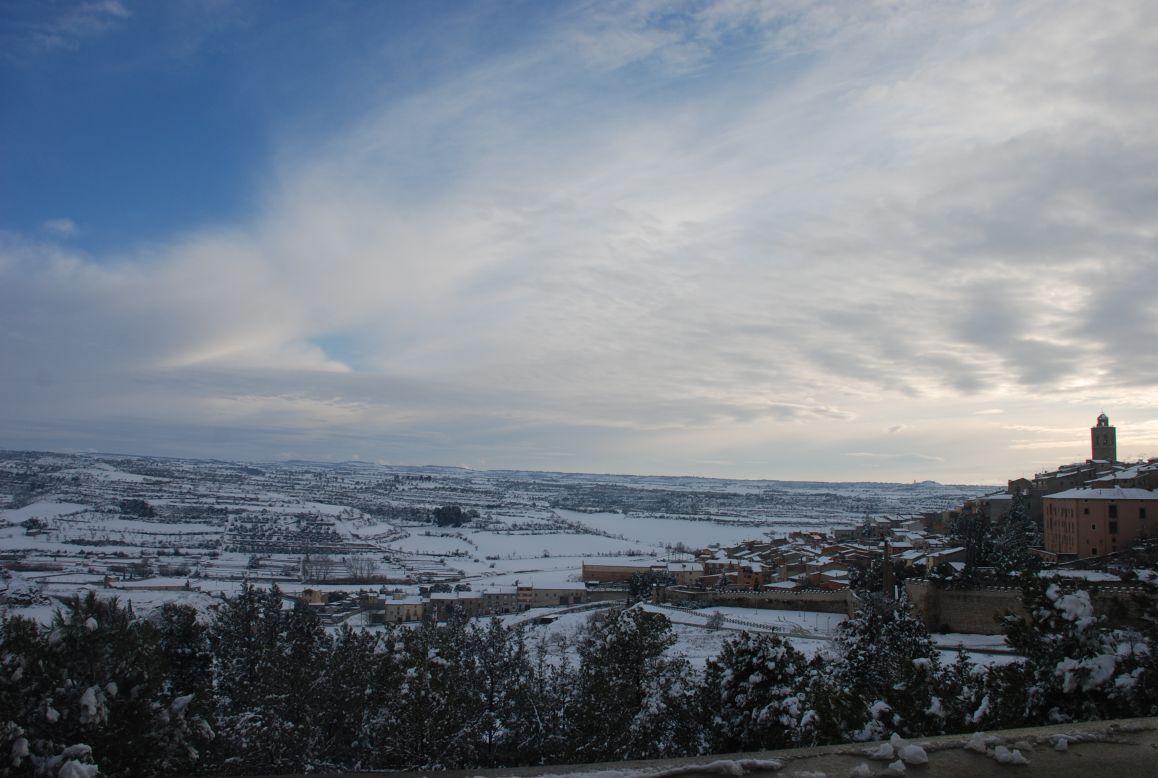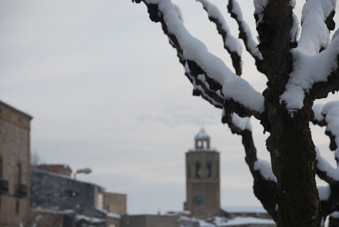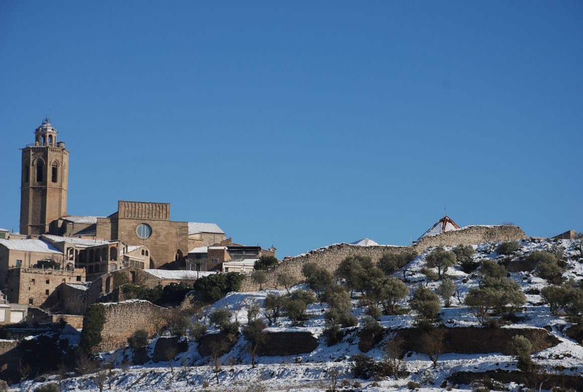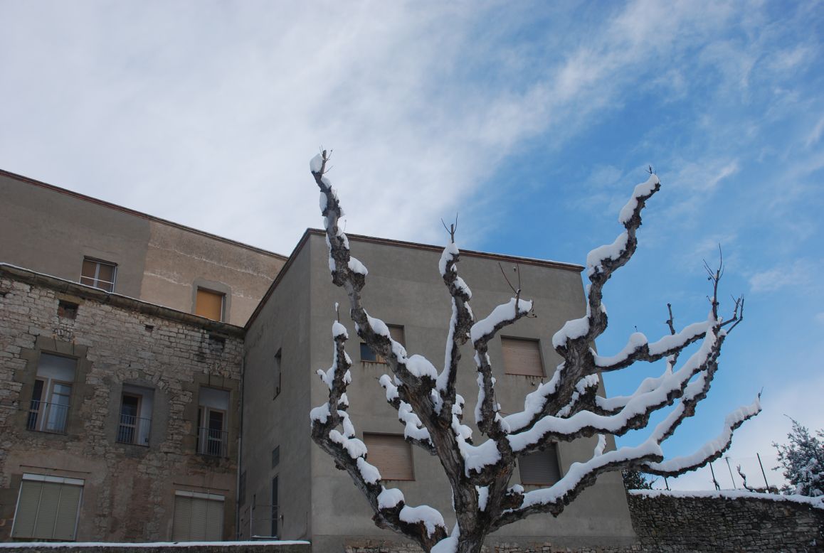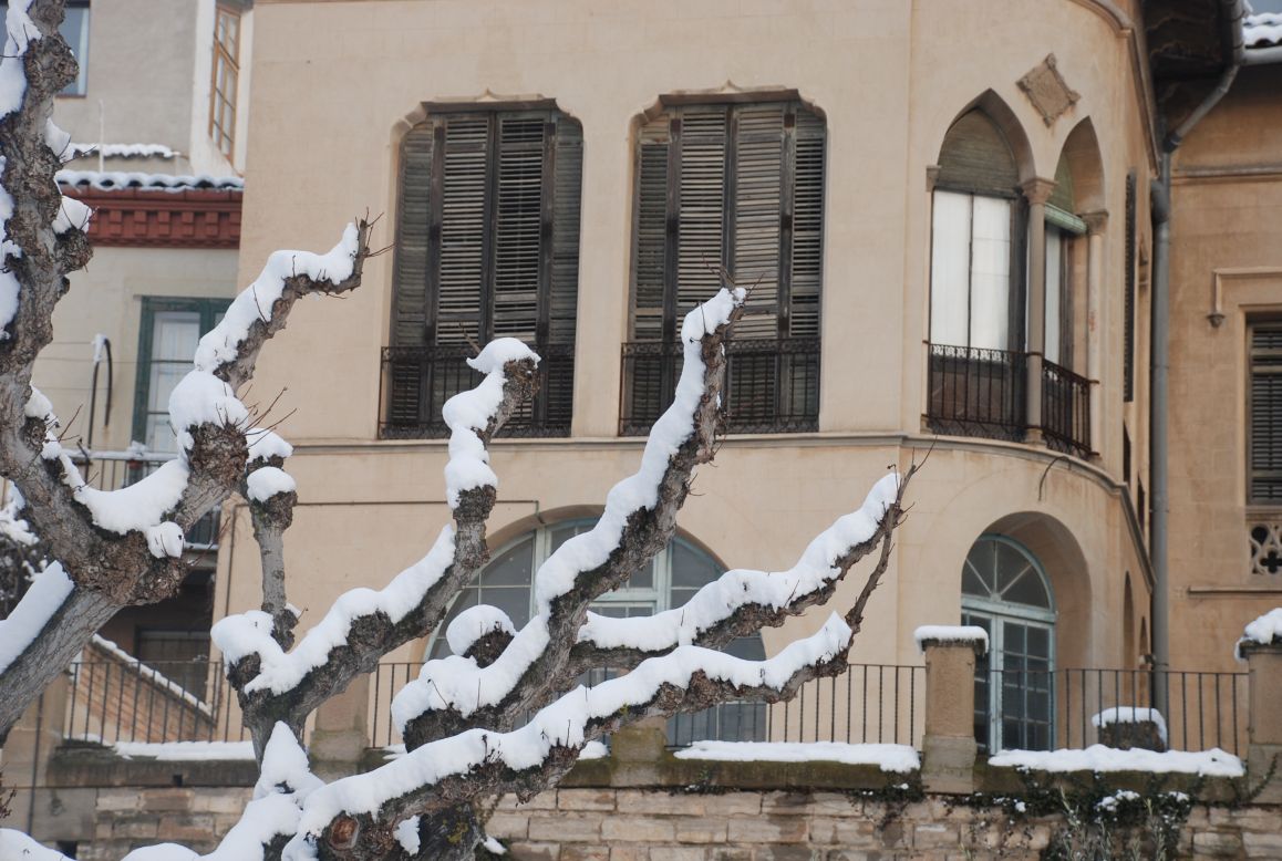 En aquest post trobareu unes quantes imatges més de Cervera fetes el dia de la nevada. En aquesta hora el cel encara estava tenyit de plom ja que no va ser fins més tard que van aparèixer els rosats i els vermellosos. Alehores ja no vaig poder fer fotografies perquè tenia el compromís d’acabar de muntar una exposició.