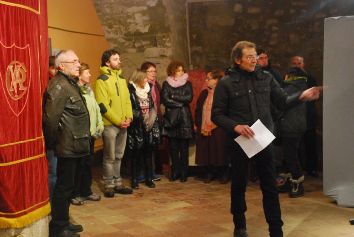 Jaume Carcasona va actuar com a representant de la Paeria encetant l’acte amb un breu parlament. Va agrair el treball de tothom que ha tingut cura de la mostra, remarcant la duresa de l’esforç emprat. Com que havia passat algun dia a veure com treballàvem sabia del fred que hi feia en aquest espai i que vam haver d’aguantar.Va esmentar, especialment, el treball fet per Ramon Mª Ra zquin, responsable de tota la part documental.