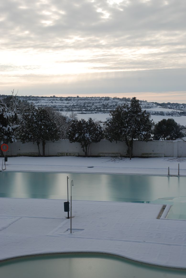 L’endemà, a la mateixa hora, el canvi és del tot evident. La fina capa de gel que cobreix la piscina es va desfent deixant veure un blau caribeny magnífic.