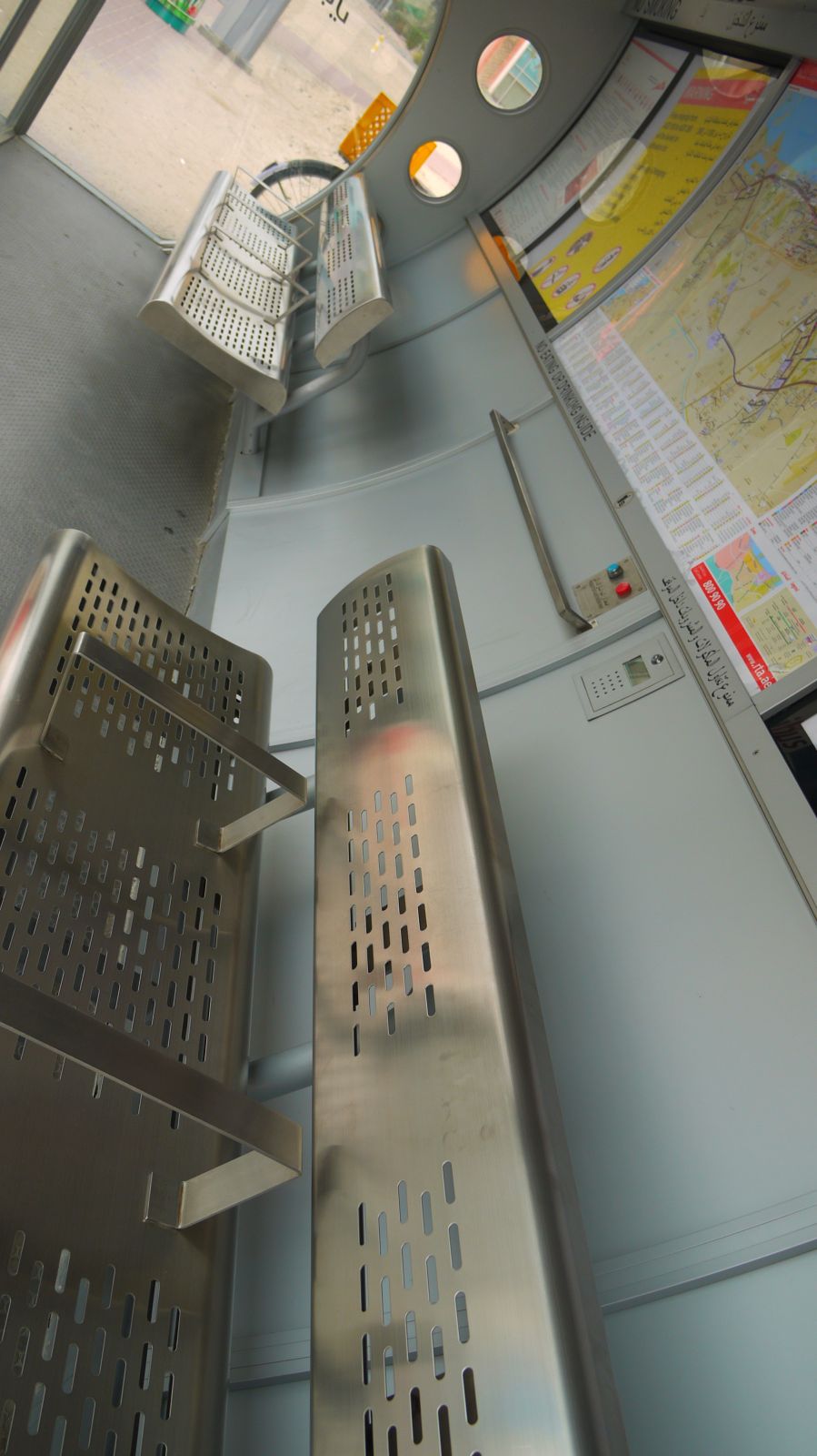 Abans de viatjar amb metro vull que vegeu les parades d’autobús. Totes tenen un disseny modern i disposen d’aire acondicionat. Encara que, en el moment de posar el peu a terra trepitgis la sorra del desert, mentre t’esperes a l’interior de calor no en passes i, en arribar l’autobús tampoc, ja que l’aire acondicionat del vehicle ho impedeix. Han pensat en fer més fàcil la vida a tota la gent que es desplaça en transport públic ja que, en aquestes contrades, a l’estiu la calor és terrible.