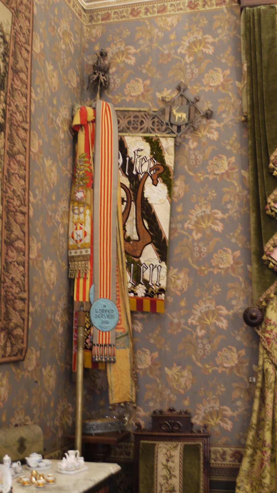 Els pendons de l’Orfeo Cerverí presideixen aquest racó del saló.