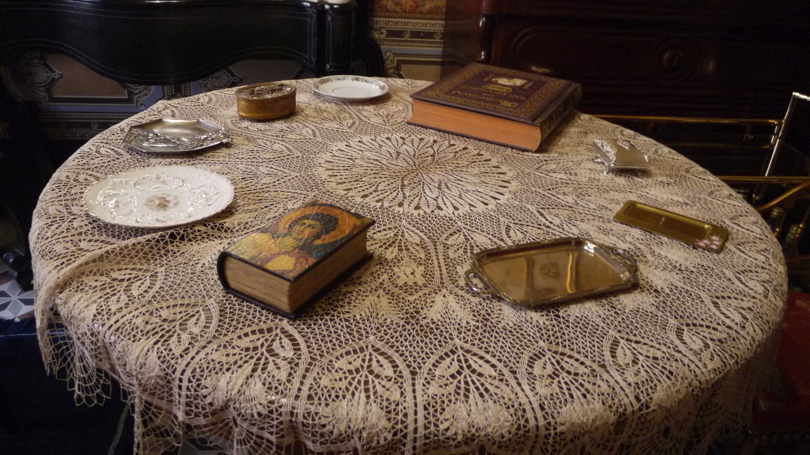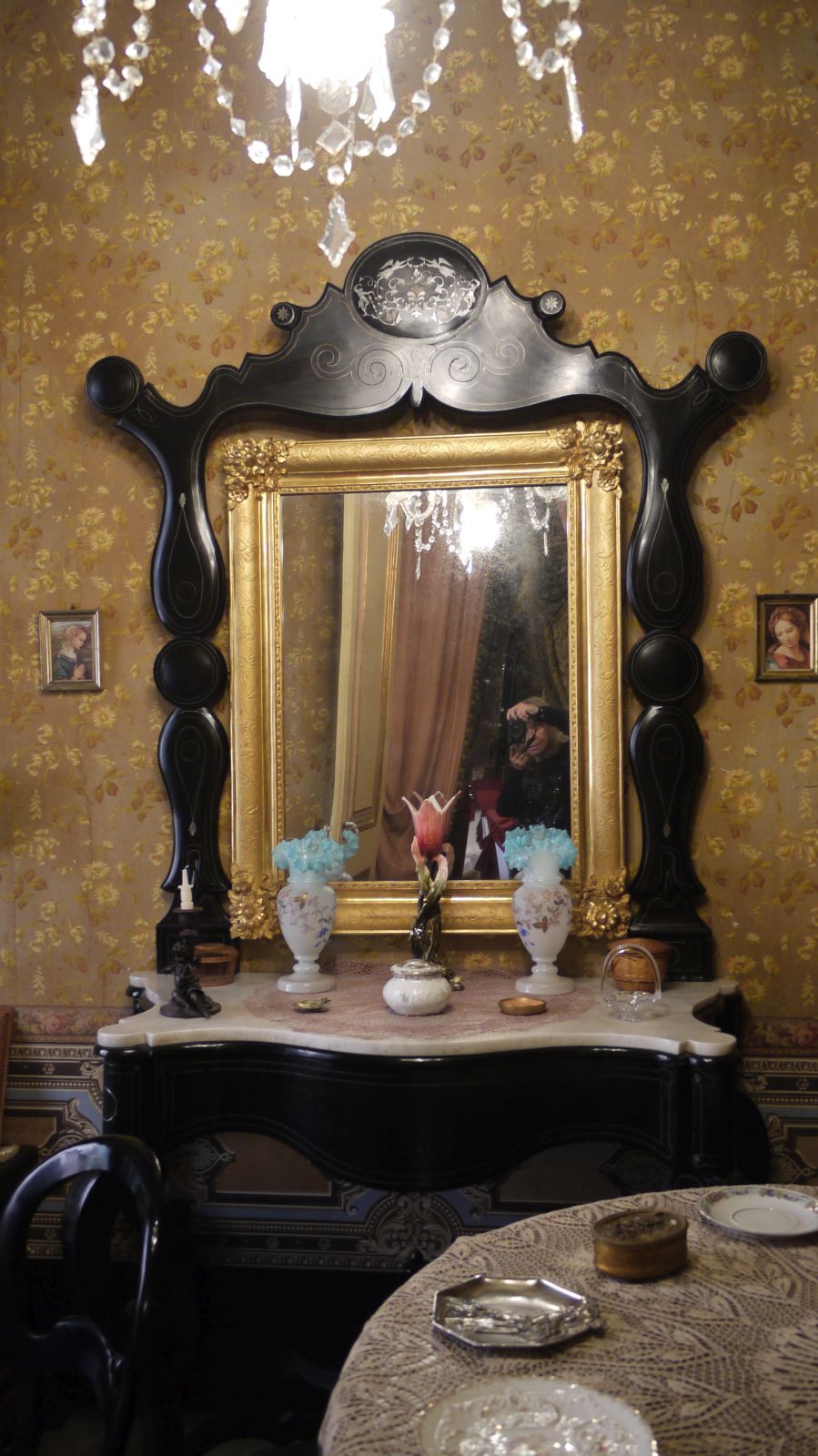 Tot està perfectament conservat. Admireu l‘estampat delicat del paper que cobreix la paret.