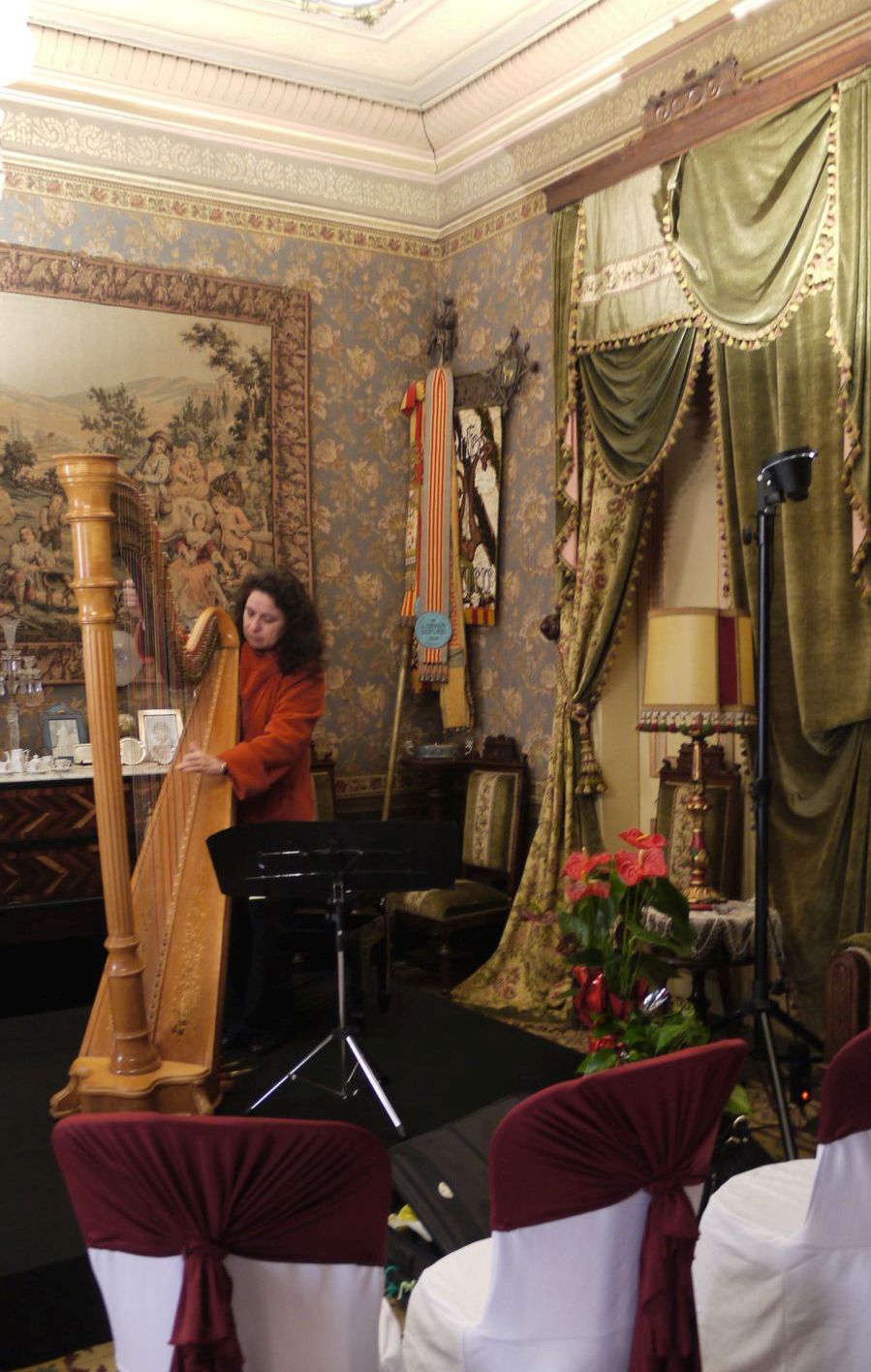 Aquest divendres i, dintre dels actes programats en motiu del 5è Festival de Pasqua de Cervera, una casa restaurada a principis del segle passat, va obrir les seves portes per acollir dins del seu millor espai tres concerts d’arpa de curta durada que van anar a càrrec de Magdalena Barrera.