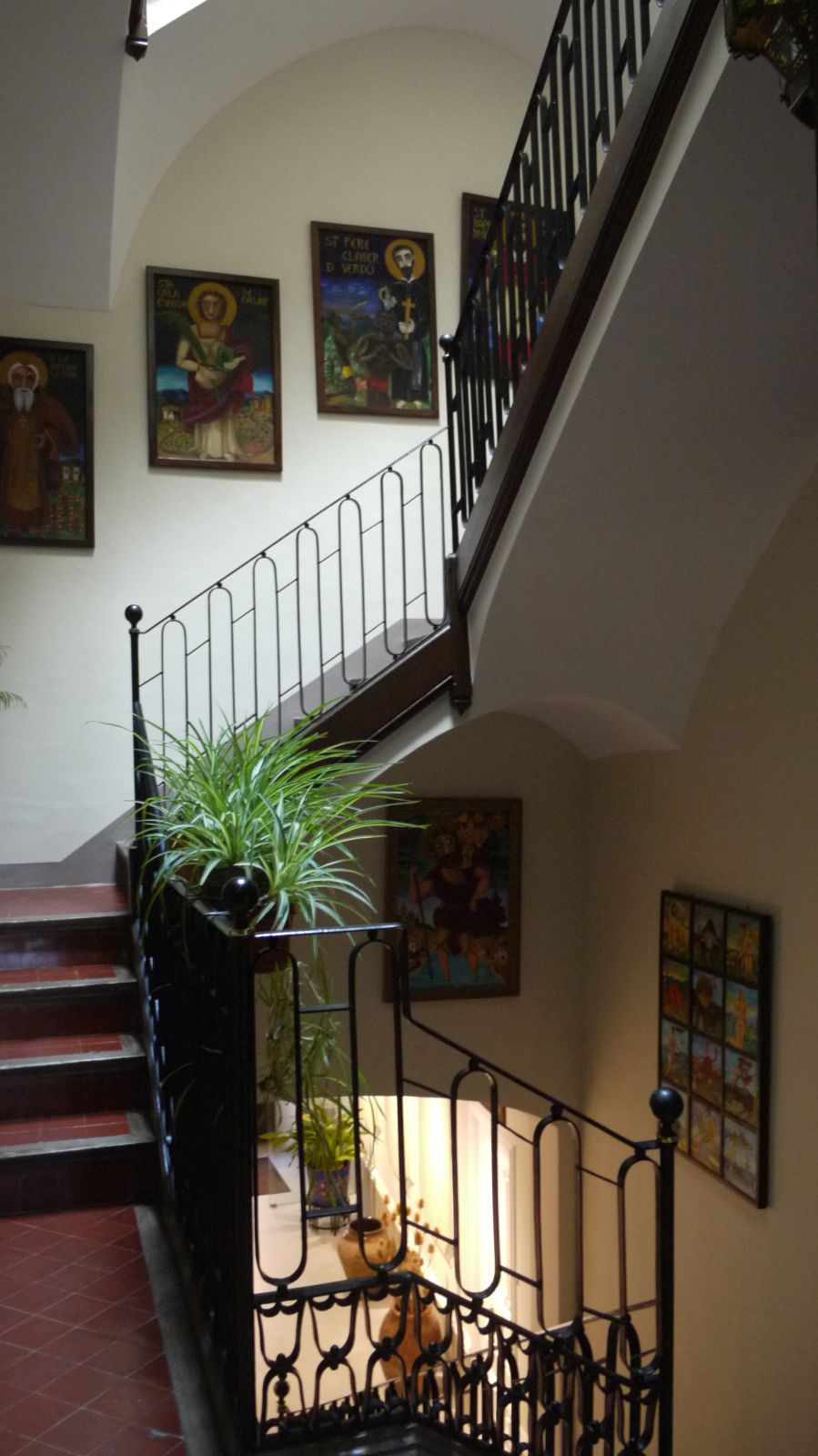 L’escala de la vivenda és molt clara i lluminosa. Està decorada amb nombrosos quadres realitzats per Josep Mª Razquin.