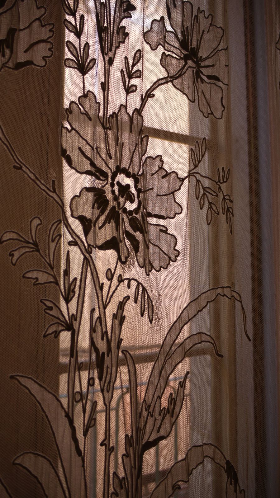 No deixeu d’observar els cortinatges. Qui tindria avui tanta imaginació per confeccionar un disseny tan elaborat, asimètric, atrevit i original?