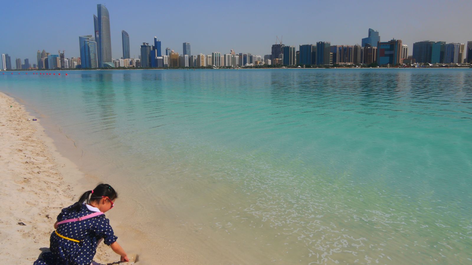 Vet aquí que ja tenim a la vista la “mare dels ous” que és la font de riquesa d’aquest Emirat i que ha permés aquests canvis accelerats que han trasformat la zona. Com podeu veure, al fons s’aixequen les torres des de les que s‘extreu el petroli. Estem a Abu Dhabi que poseeix unes immenses reserves d’aquest preciat líquid.