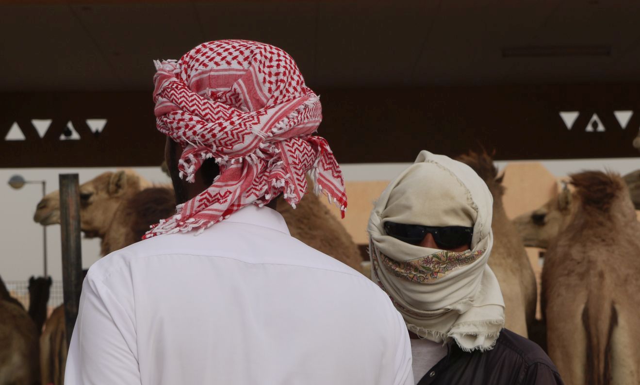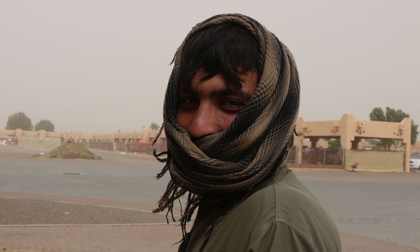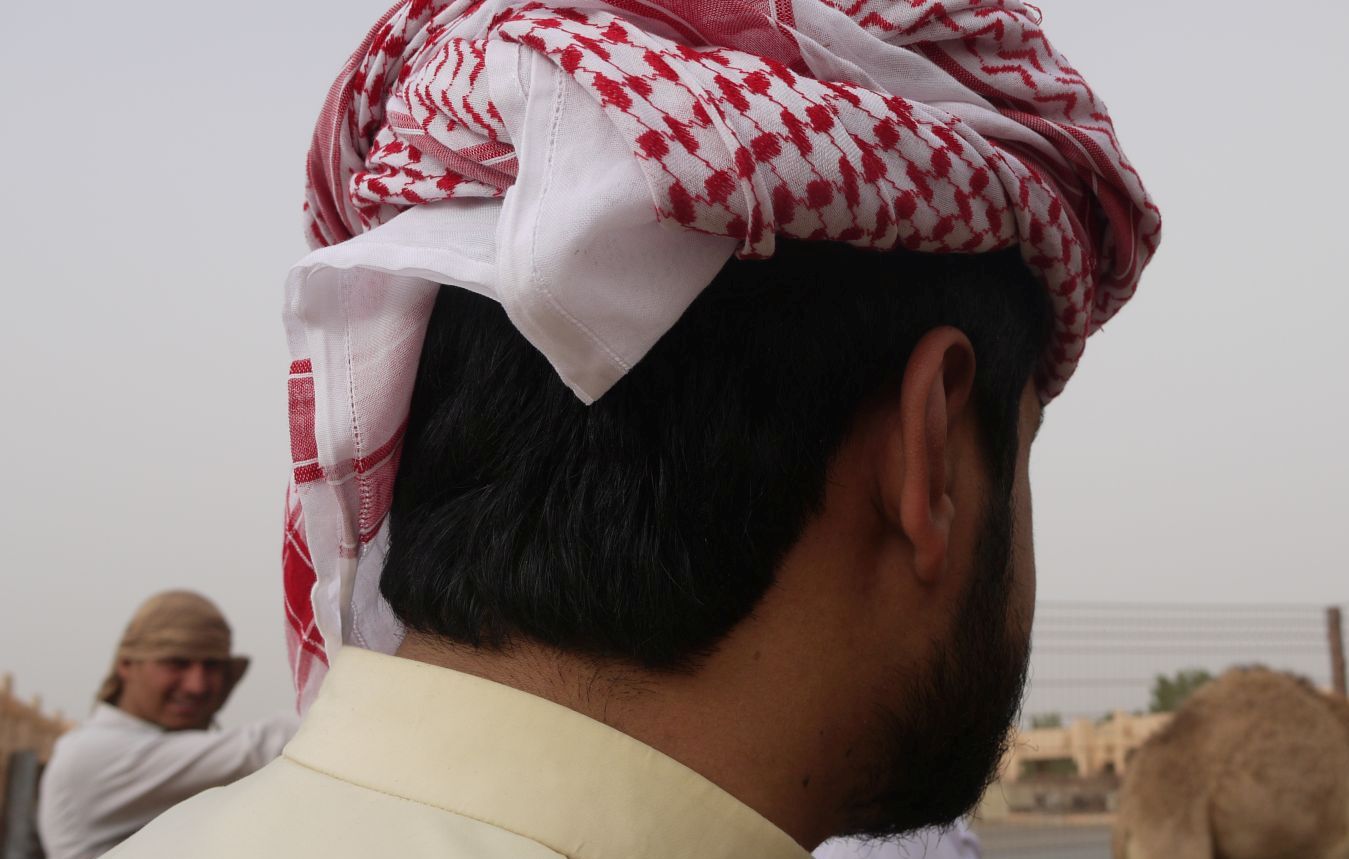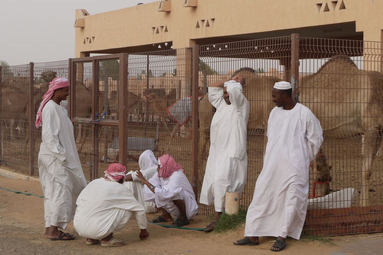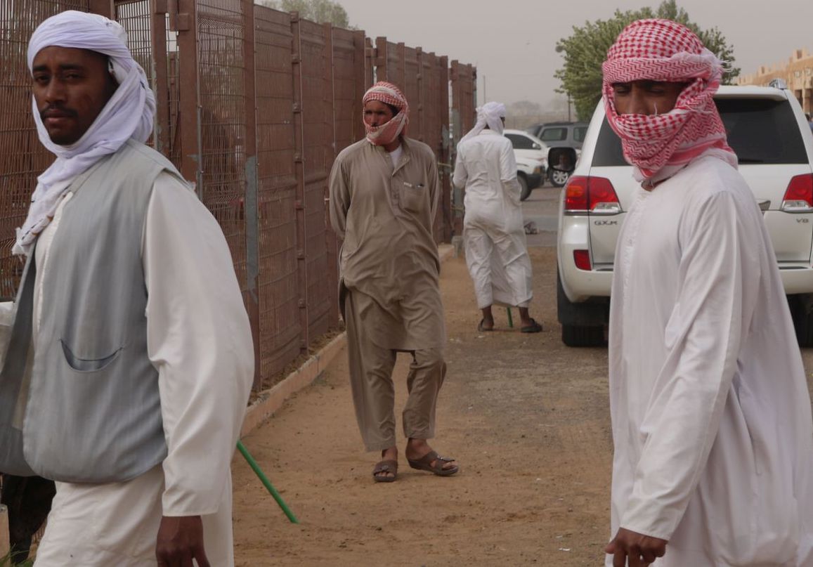 Aquí el glamour i l’exhibició de riquesa desapareix per donat pas a un ambient molt diferent. Les cares dels homes que tenen cura dels camells tenen un aire d’haver passat molt temps a l’aire lliure i, tenint en compte que el dia que vaig fer aquestes fotografies la tempesta d’arena molestava una mica, ells anaven molt protegits, tan del cos com de la cara.