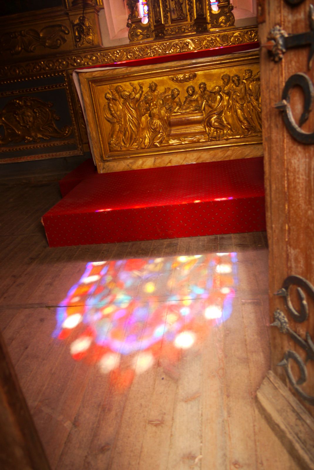 L’església crida l’atenció perquè presenta un espai partit en dos amb els laterals lliures i les columnes alçades al mig d’aquest espai.